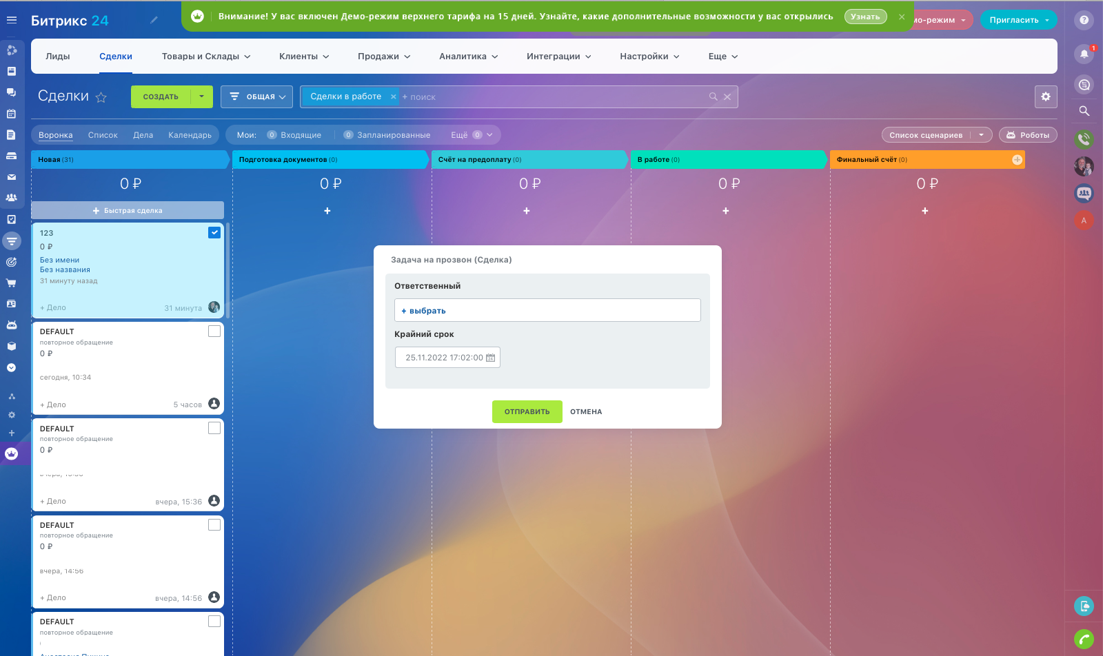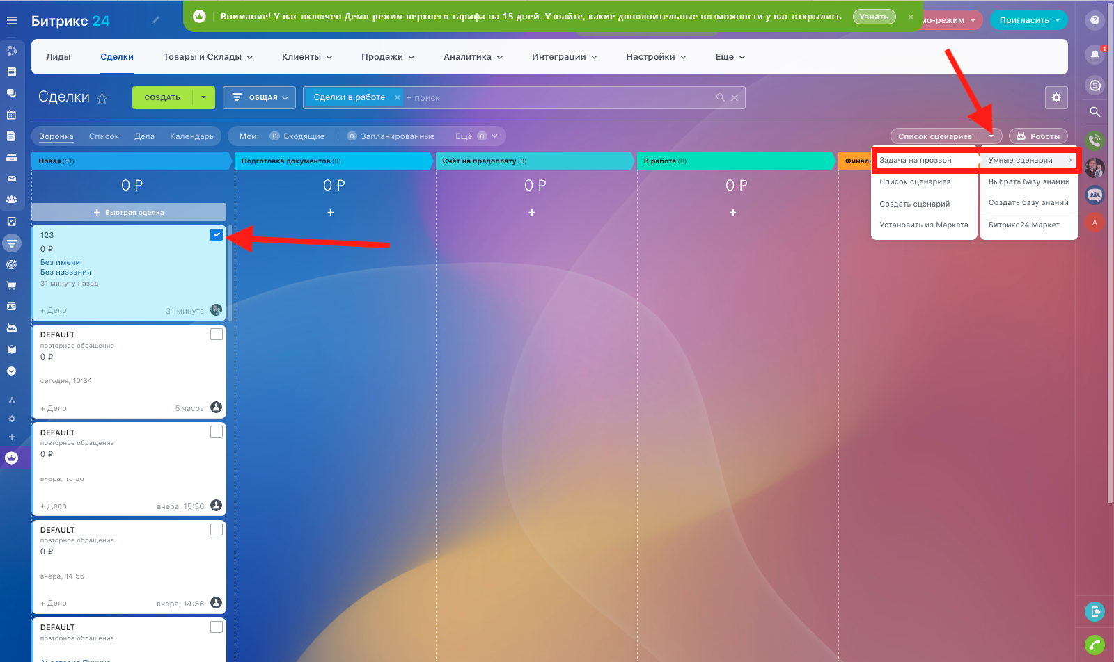 2. В Сделках появится умный сценарий "Задача на Прозвон (Сделка)"
