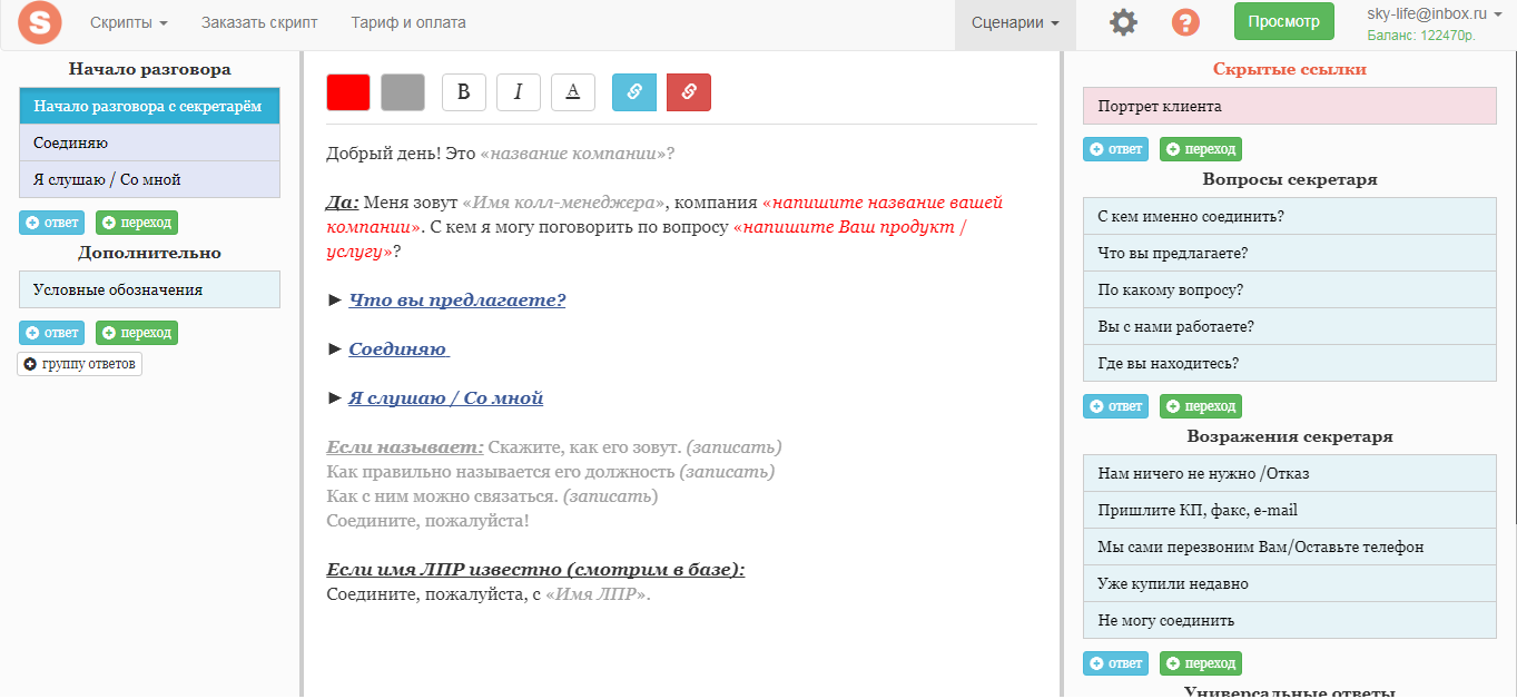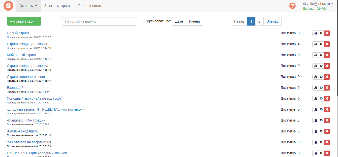 Приложение позволяет создавать интерактивные скрипты продаж для входящих и исходящих звонков.