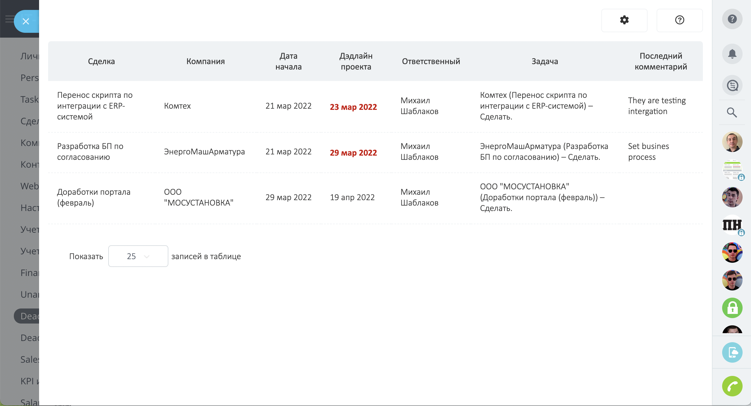 - Проекты отсортированы по дэдлайну. Сверху – самые горящие.
