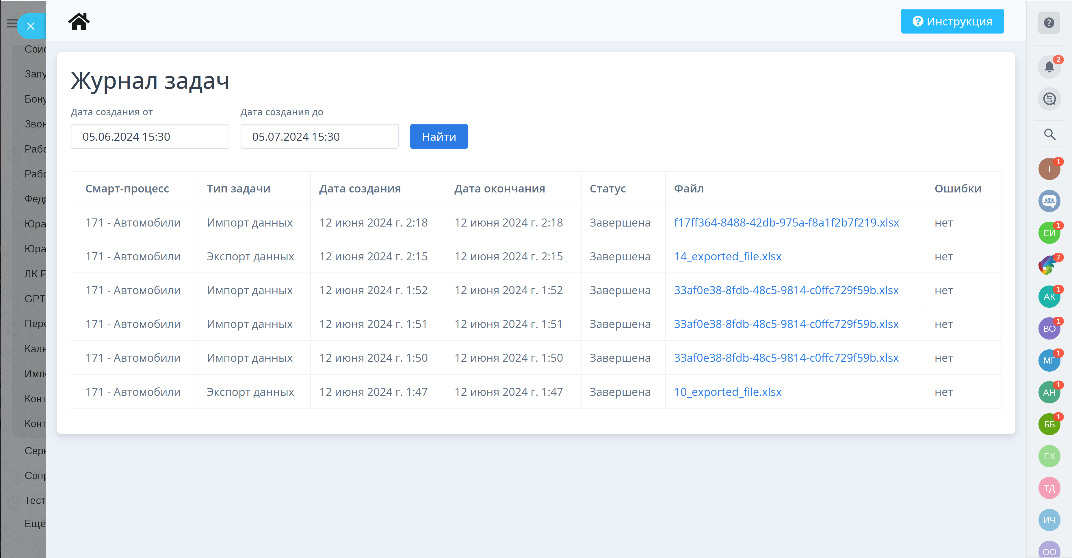 С нашим приложением вы можете легко экспортировать данные из любого смарт-процесса в формате Excel.