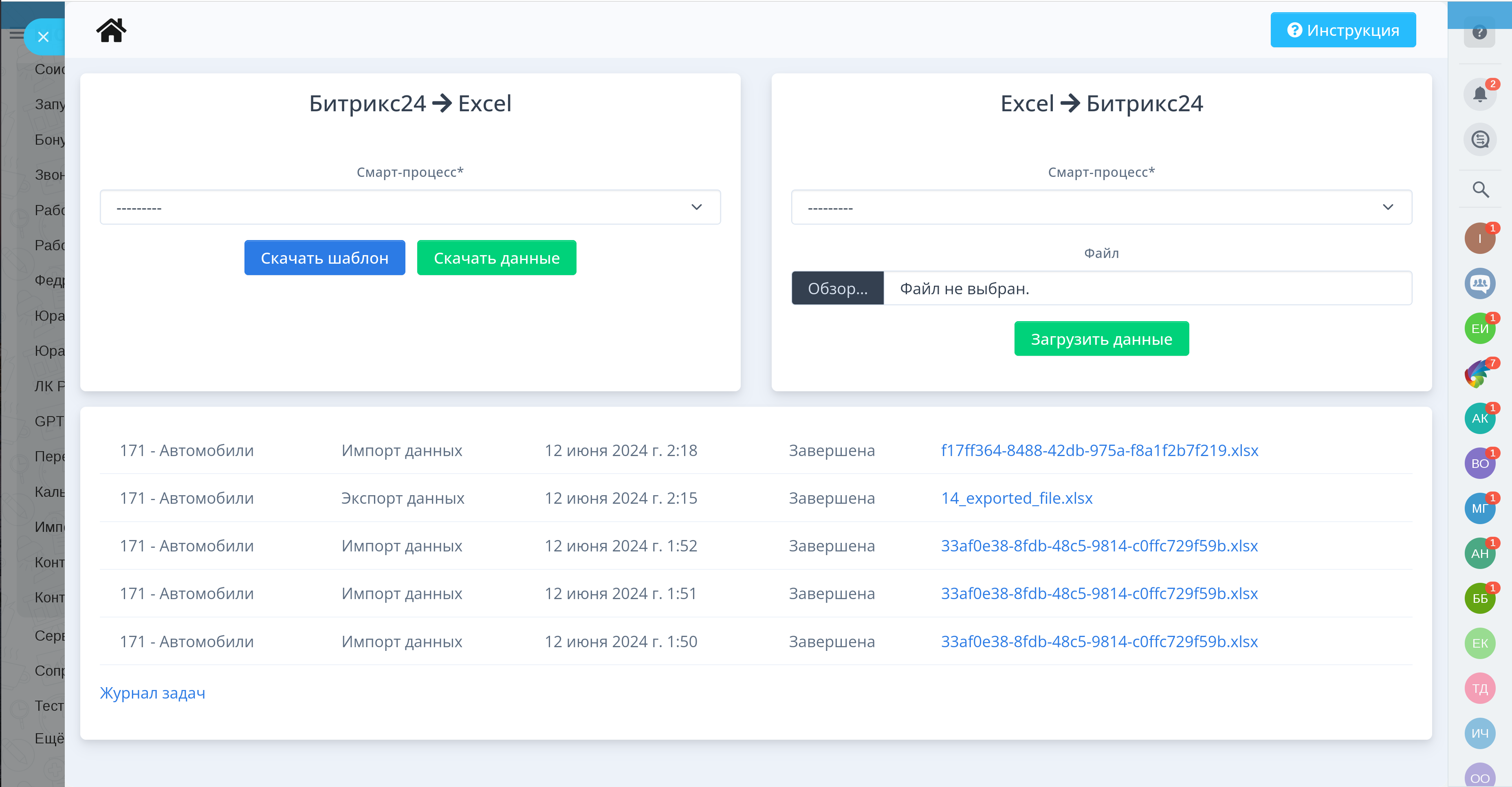 Смарт-процессы в Битрикс24 – это мощный инструмент для создания и управления произвольными сущностями и реестрами. Наше приложение расширяет эти возможности, предоставляя функции экспорта и импорта данных, что делает управление более гибким и эффективным.