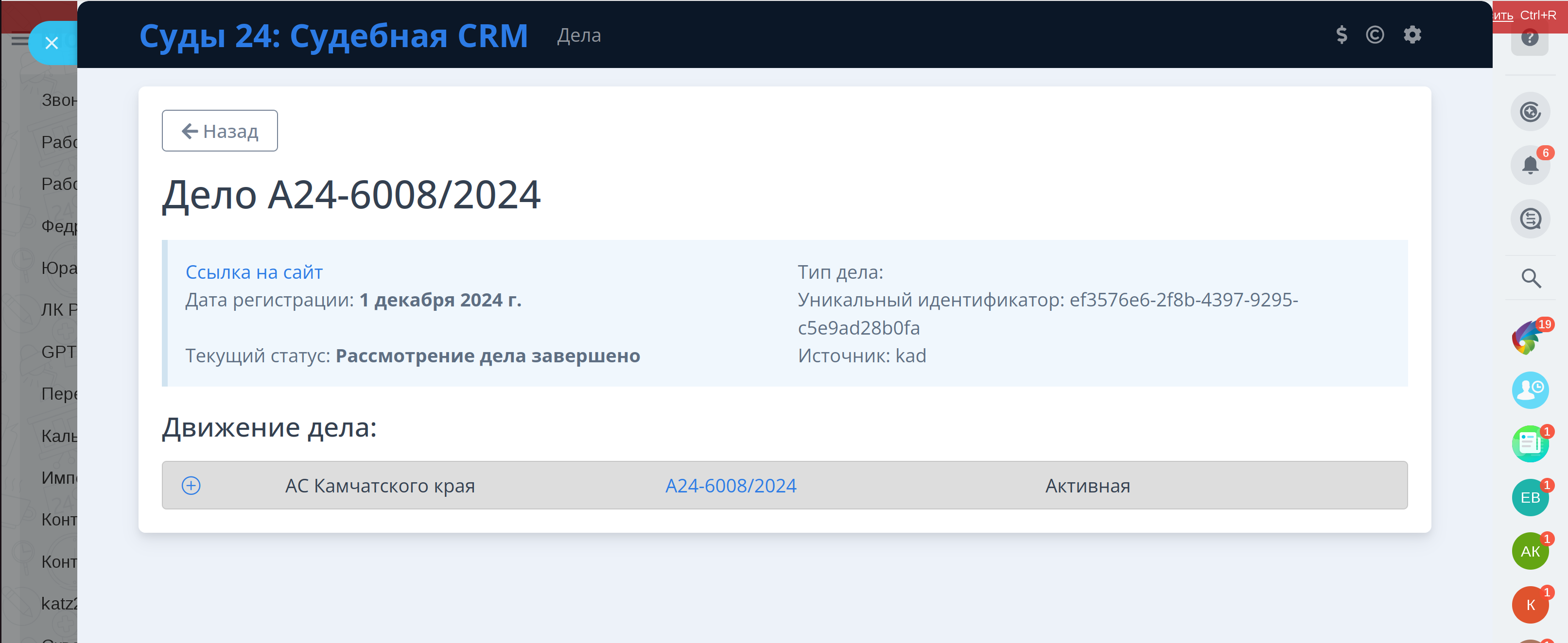 Суды24 - Юридическая CRM (КАД, ГАС, Мировые суды и заседания)