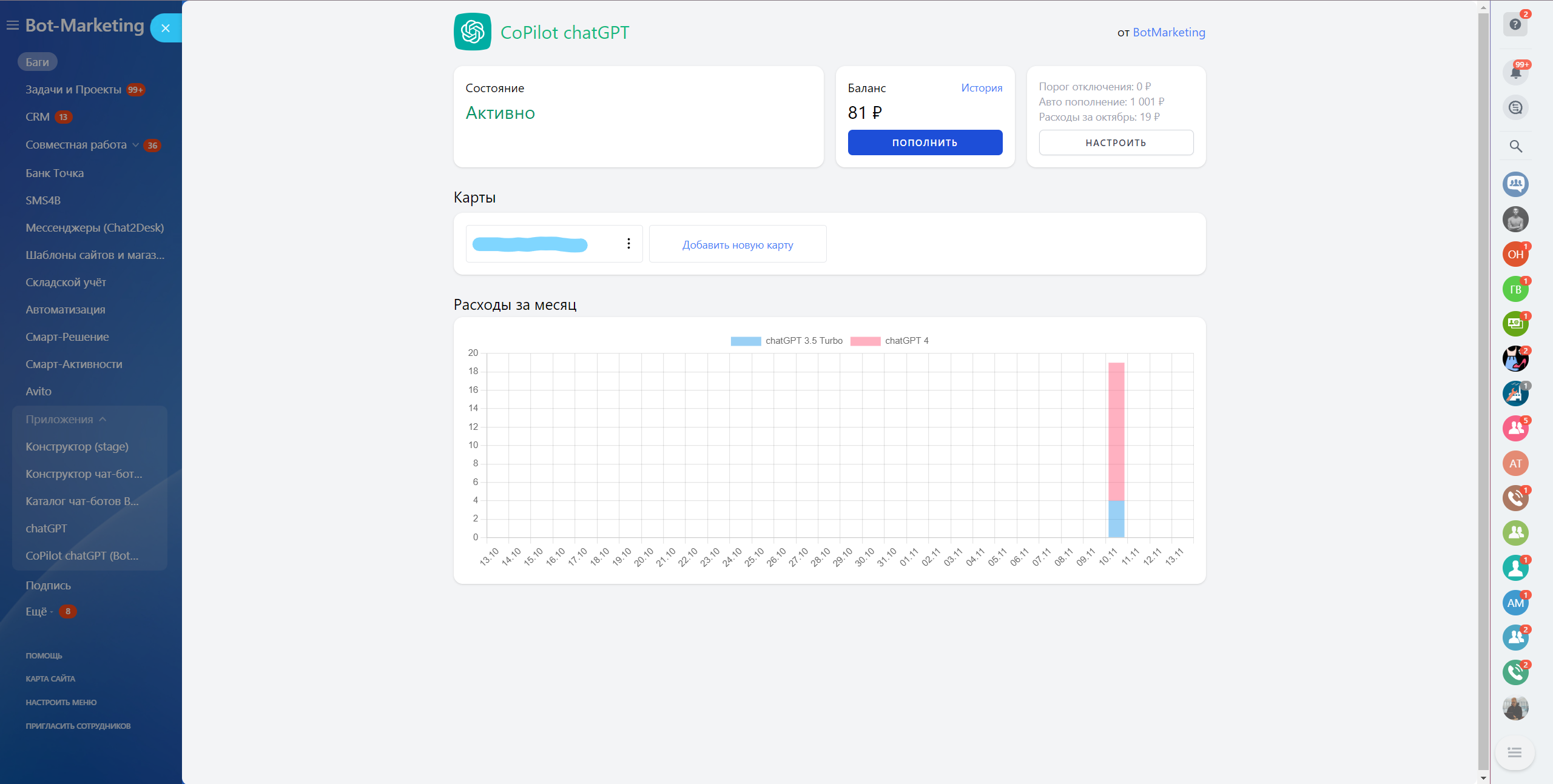 4. Выберите в меню слева пункт "CoPilot chatGPT"