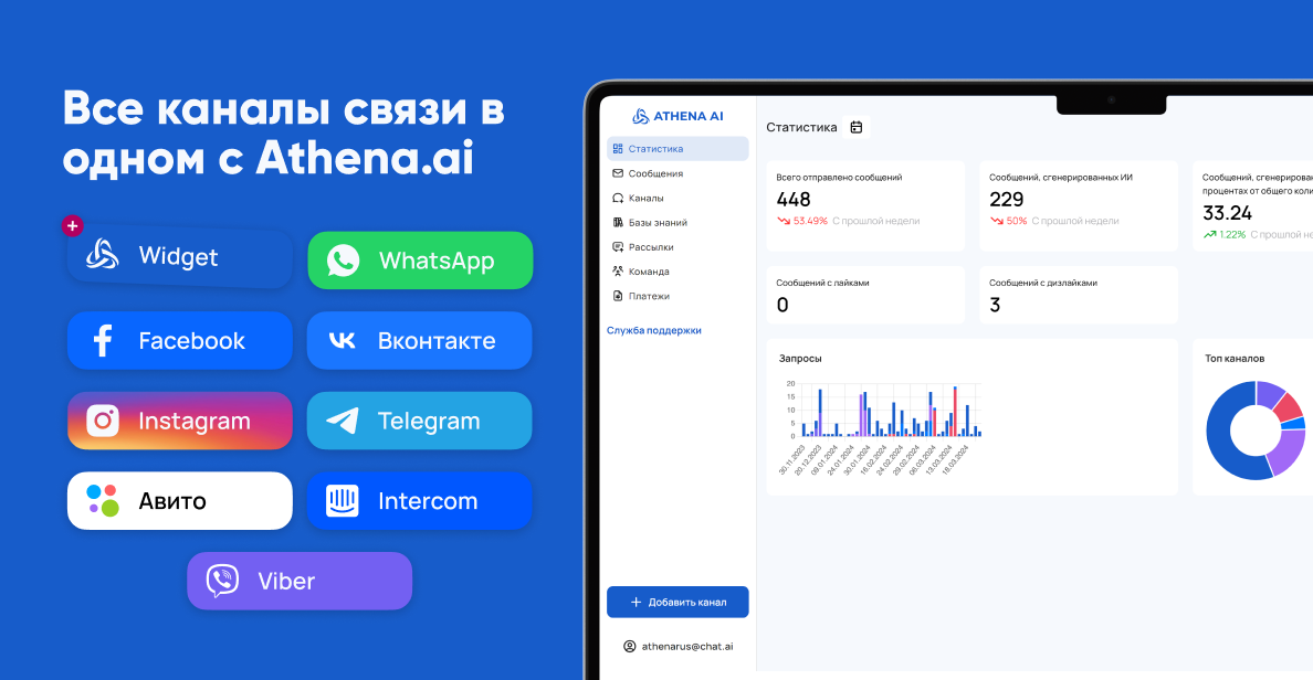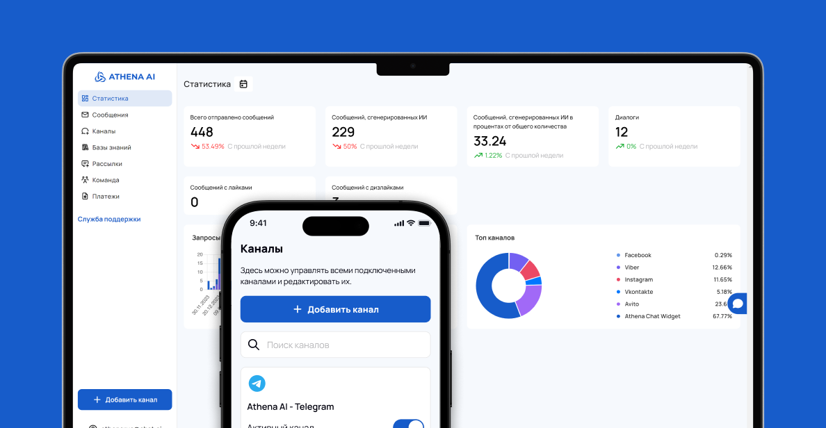 Автоматизируйте общение с клиентами в мессенджерах с помощью ИИ вместе с Athena AI