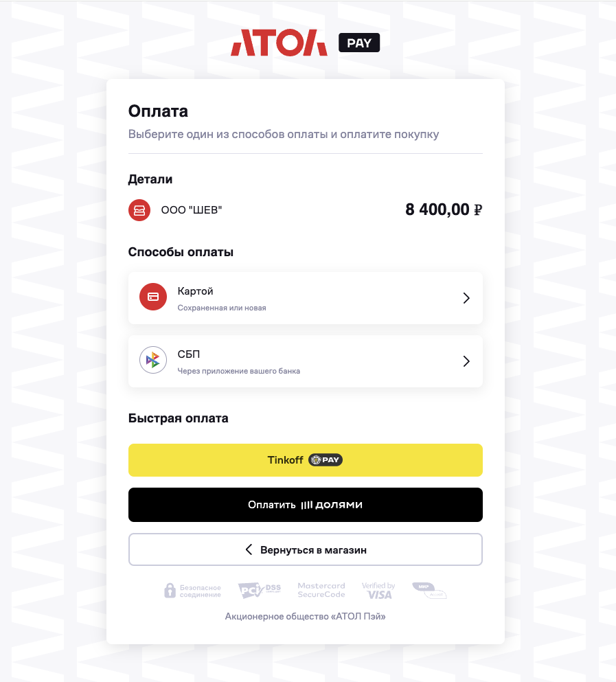 - Поддержка различных признаков расчета (предоплата, полная оплата).