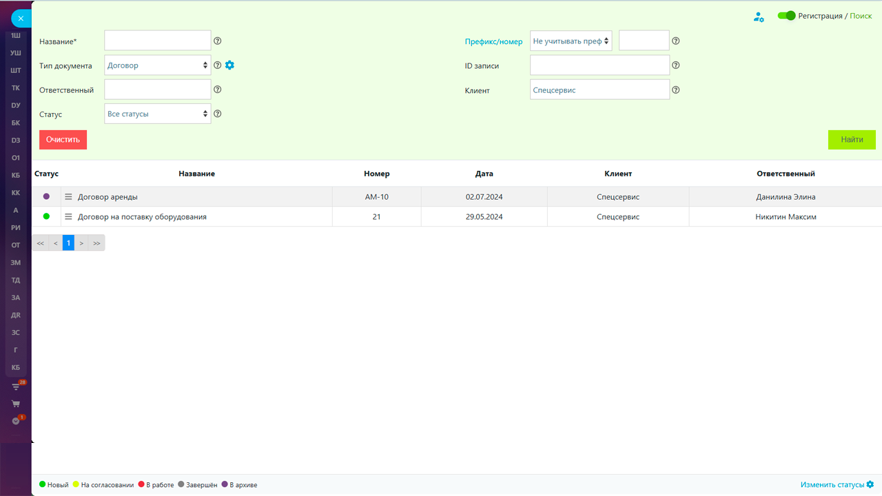 Сначала офис-менеджер устанавливает статус «На согласовании», а установка ответственного происходит автоматически через настройки - это Заместитель директора.