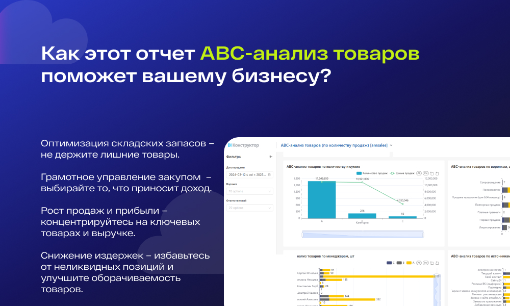 - Рост продаж и прибыли – концентрируйтесь на ключевых товарах и максимизируйте выручку.