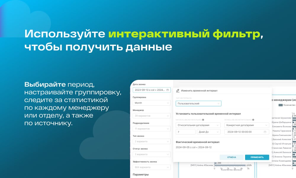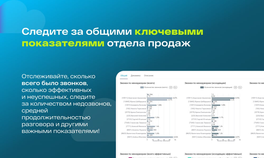 Дашборд по анализу звонков в вашей CRM: визуализация данных, аналитика, KPI, прогнозы, все для развития ваших продаж.