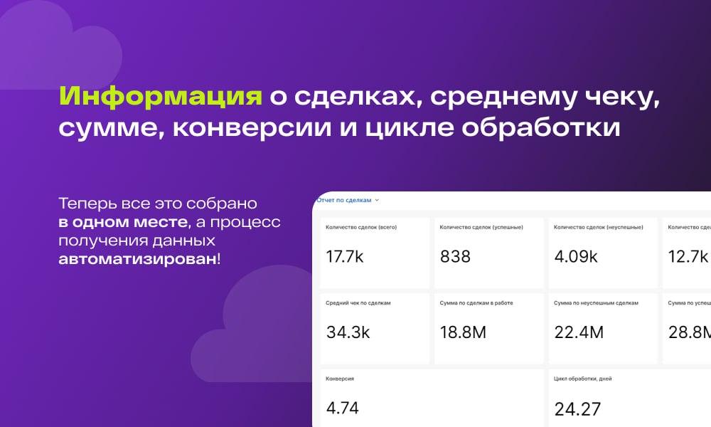 Очень рады, посмотрите еще наши другие отчеты в маркете: bi отчет по звонкам и bi отчет по лидам. ещё