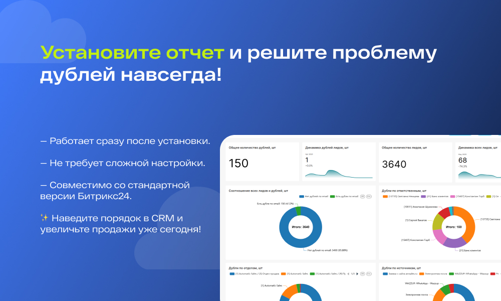 Установите отчет прямо сейчас и начните контролировать качество базы — избавьтесь от дублей и увеличьте продажи!