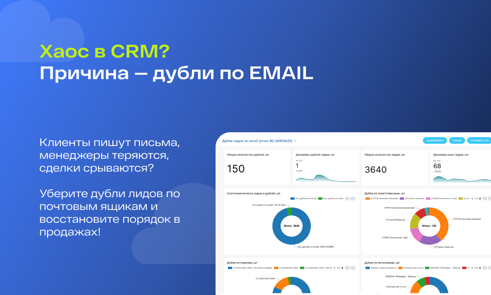 Устали от хаоса в CRM и неточной аналитики из-за дублей по e-mail? Наведите чистоту в вашей CRM.