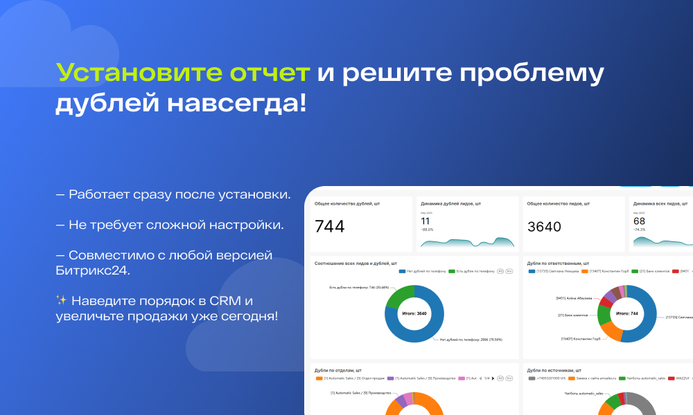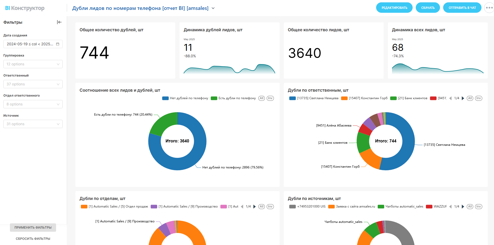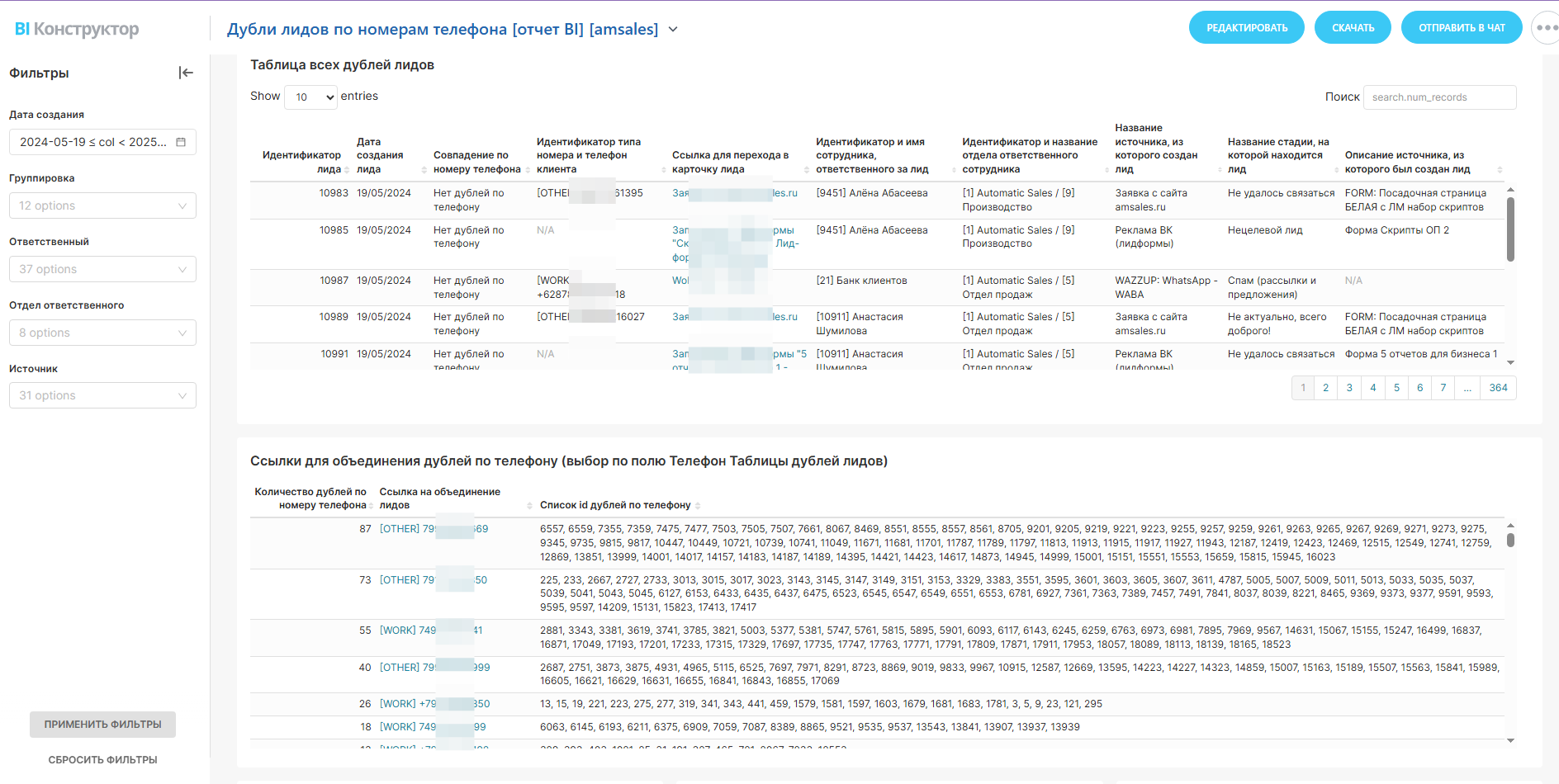 С помощью нашего отчета "BI-отчет: Дубли лидов по телефону в CRM" вы сможете: