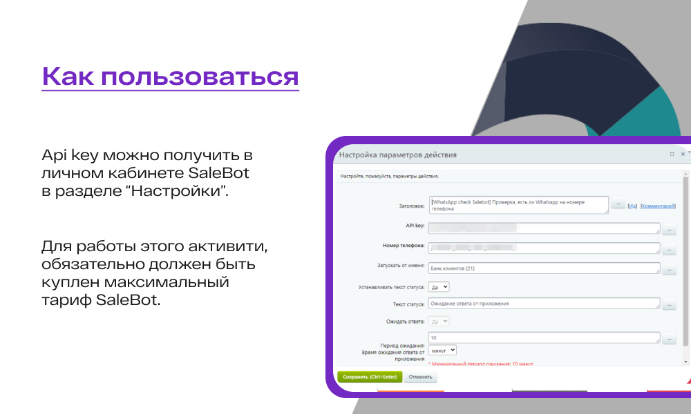Для работы этого активити, обязательно должен быть куплен максимальный тариф SaleBot.