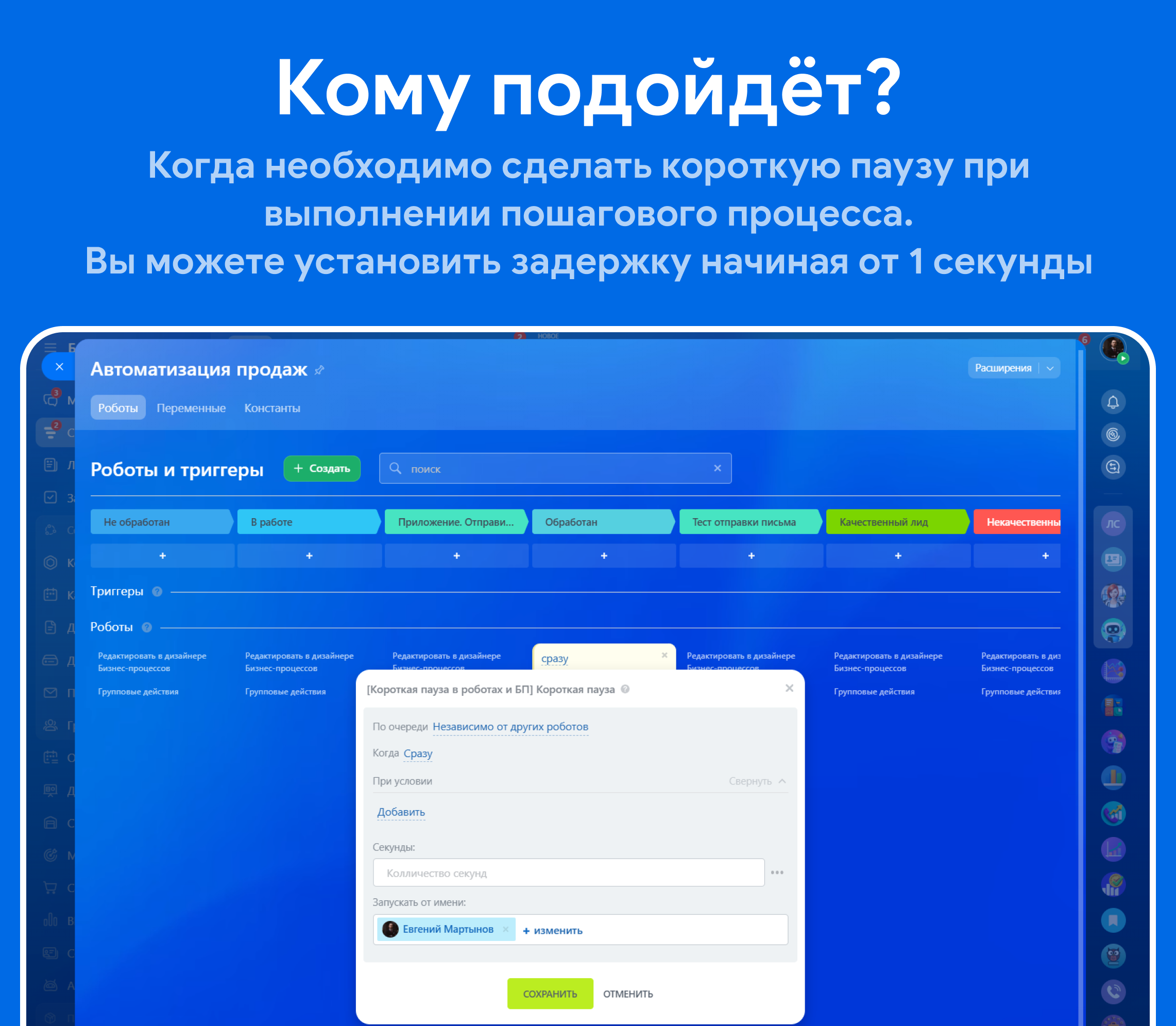 Ваша собственная пауза от 1 секунды в бизнес-процессах и роботах