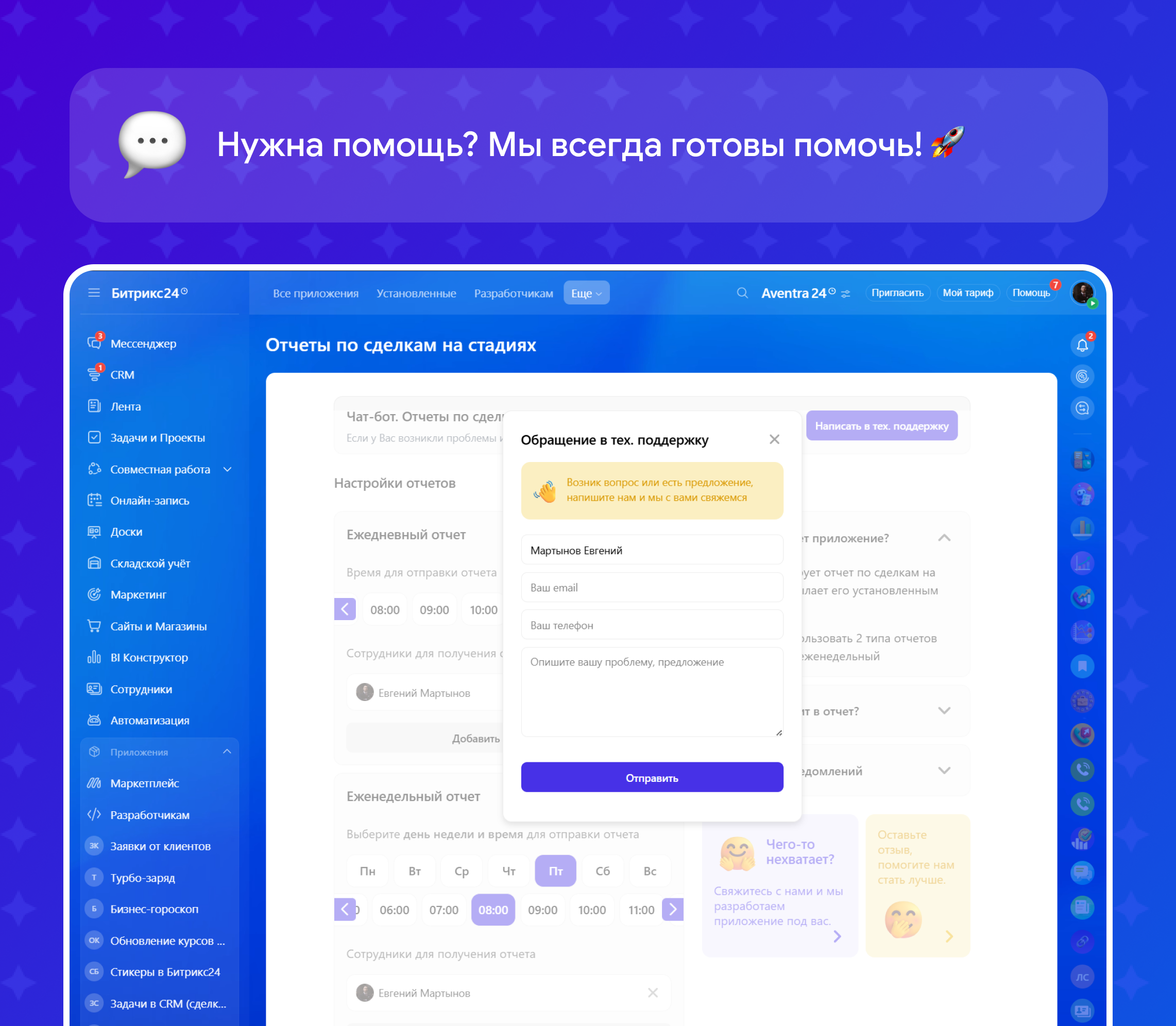 Если у вас возникнут вопросы или идеи для улучшения, вы можете легко связаться с нами через форму обратной связи внутри приложения. Мы всегда готовы помочь!