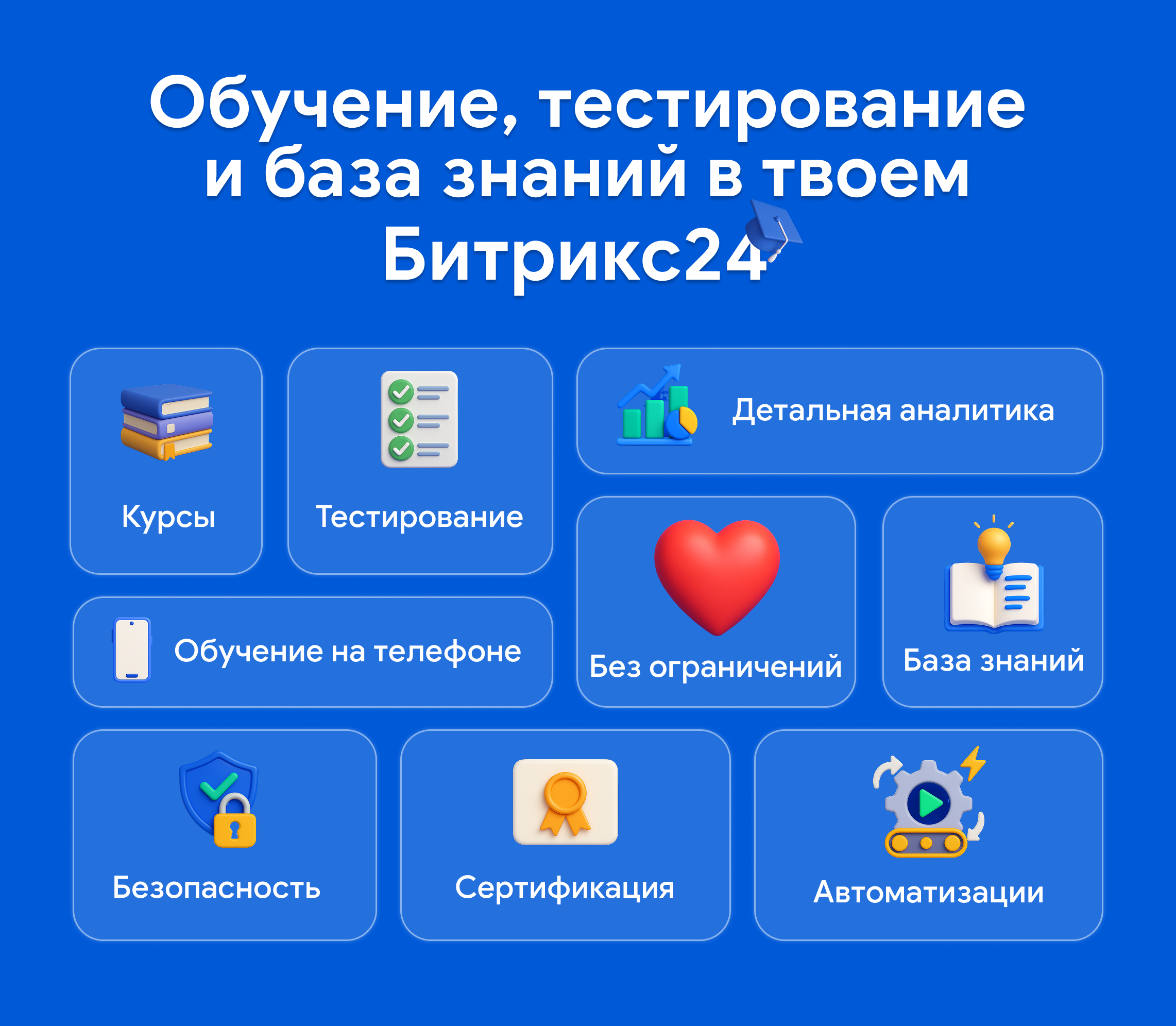 Твоя полноценная система обучения с тестированием и базой знаний — прямо в твоём Битрикс.