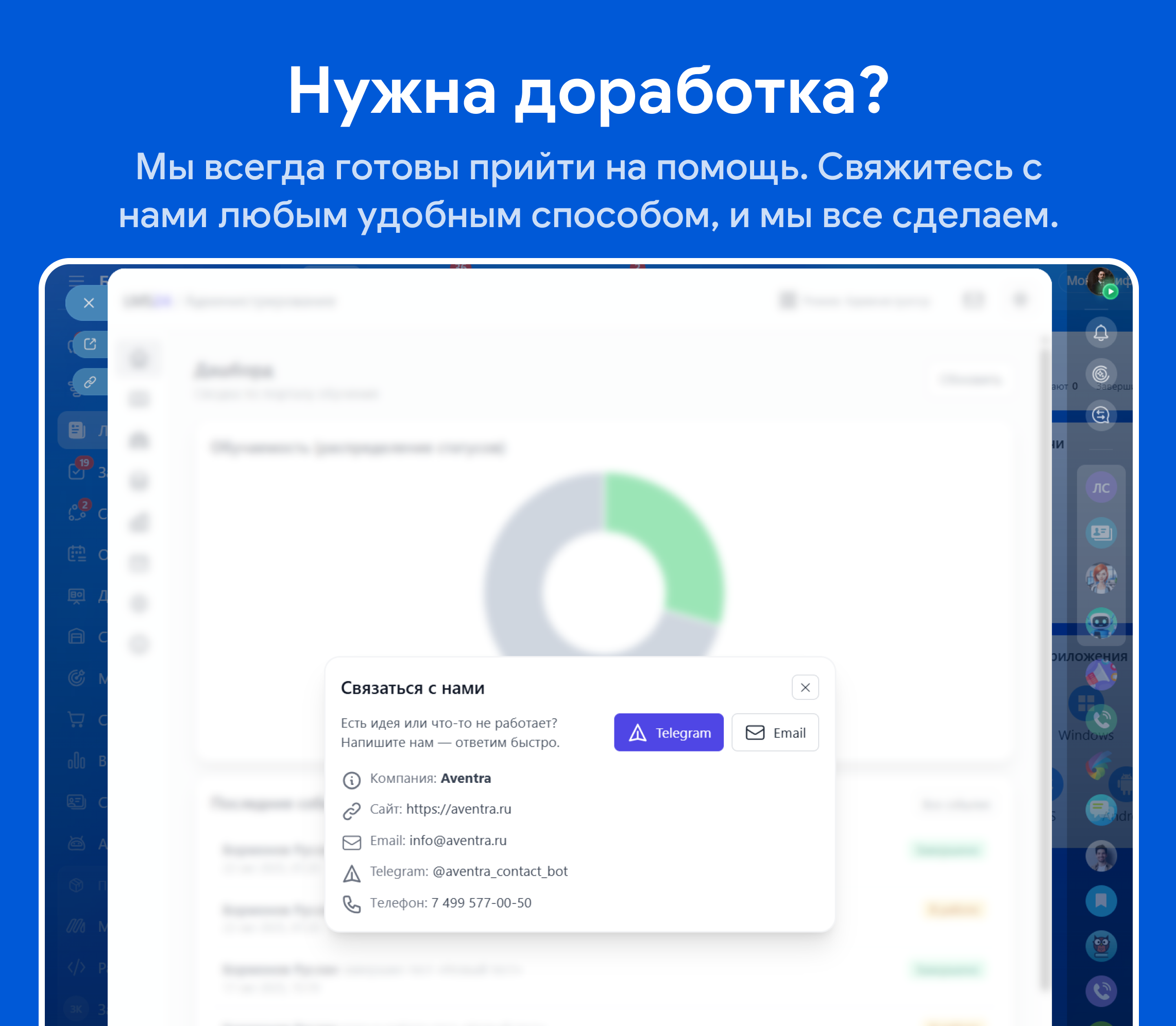 Брендинг под вашу компанию: логотип, фирменный цвет, оформление сертификатов и интерфейса.