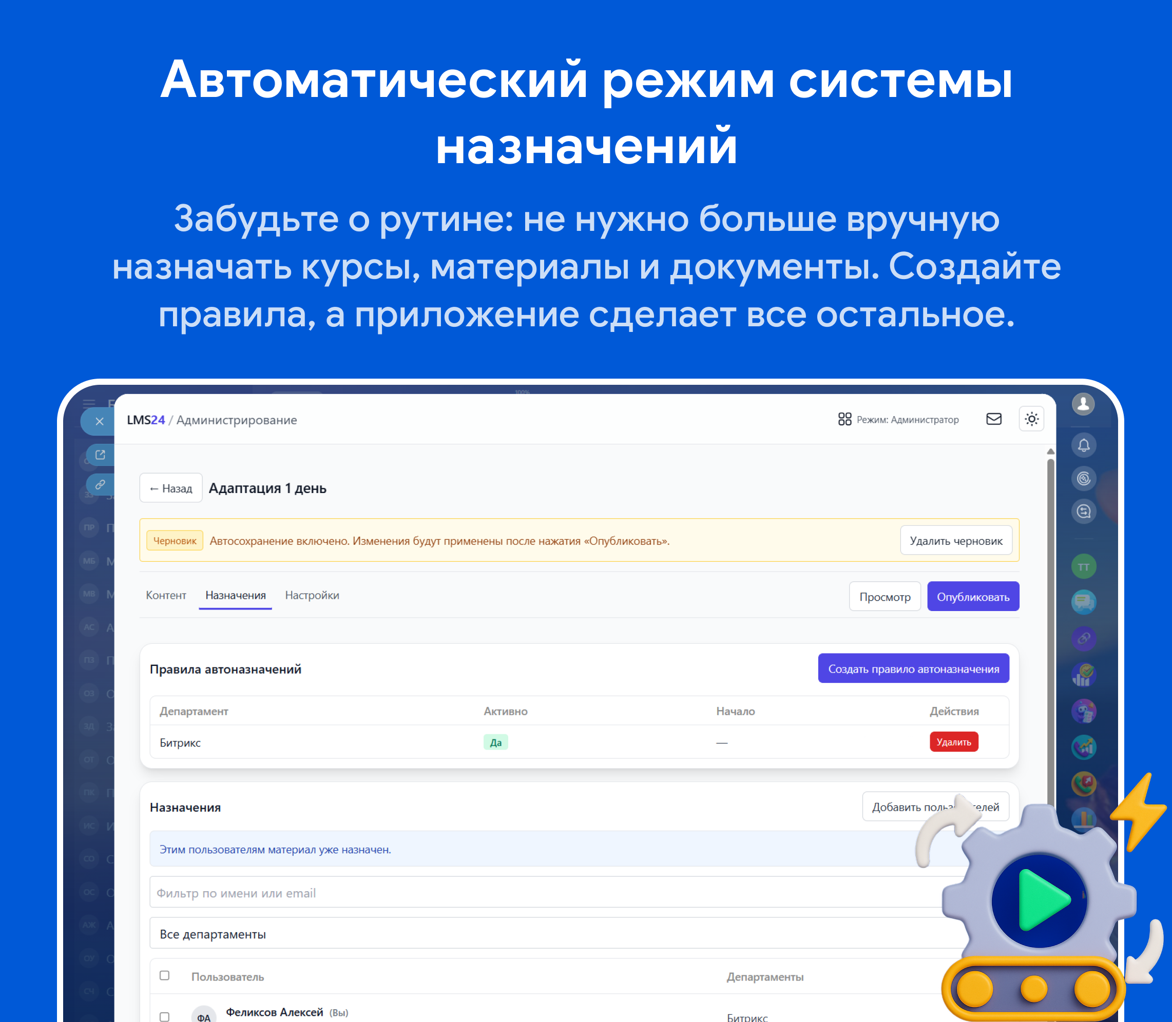 Какие задачи решает:Онбординг без хаоса. Новичок получает нужные материалы и тесты в правильном порядке.