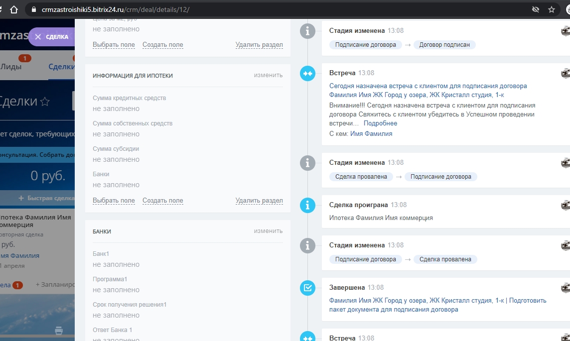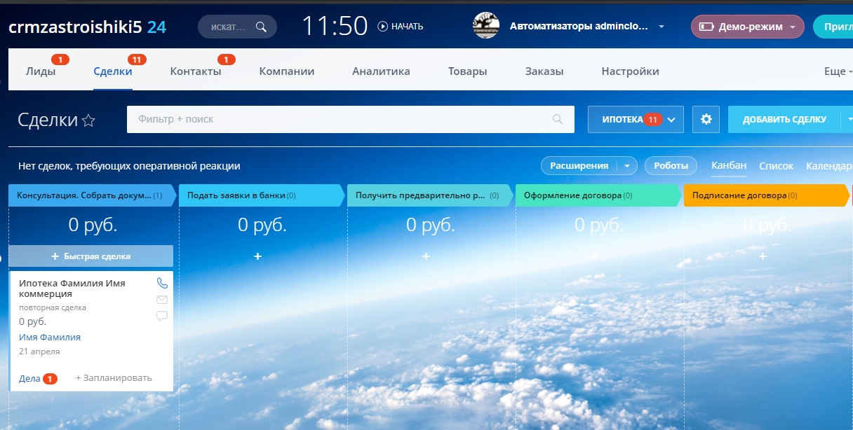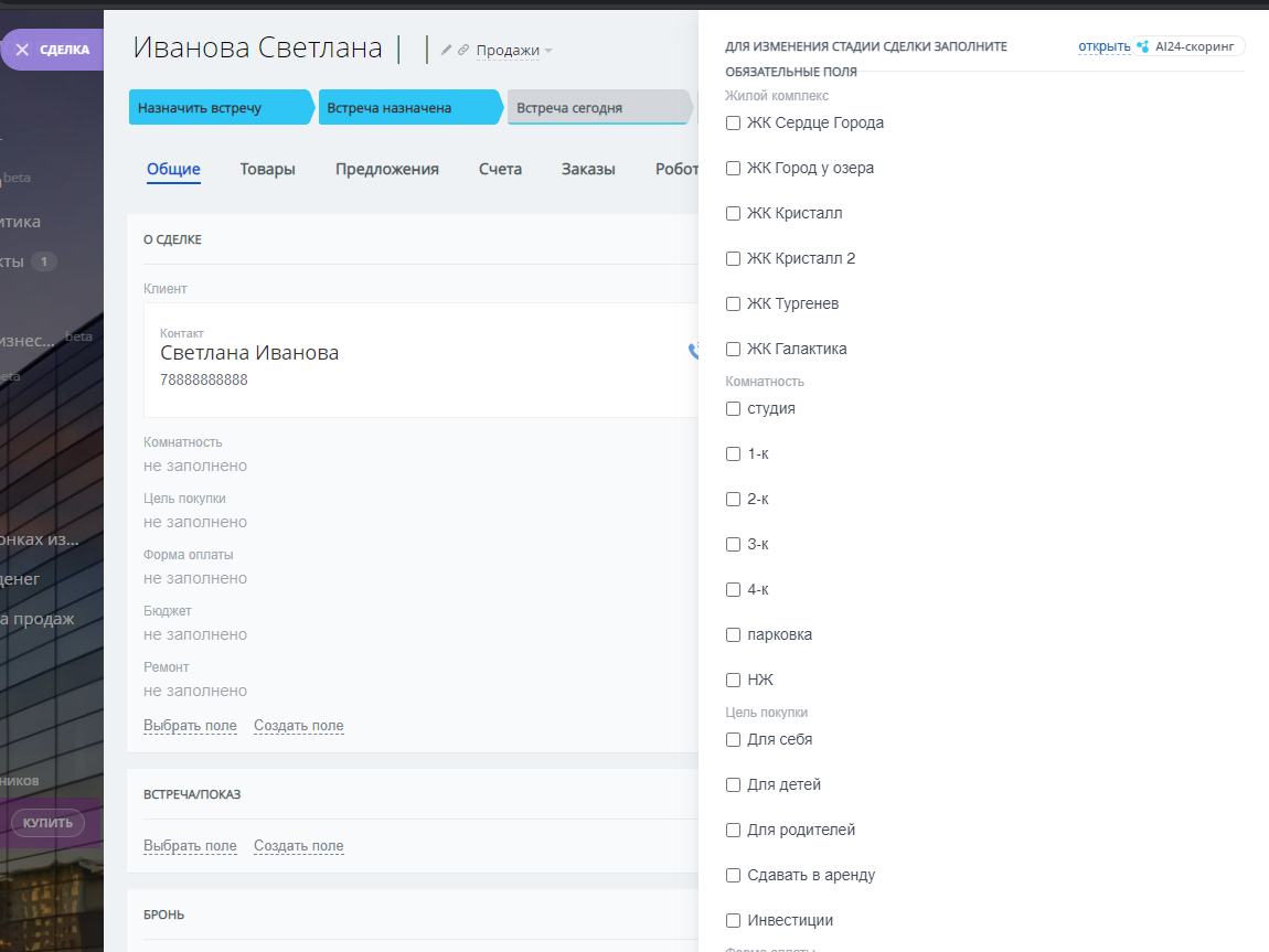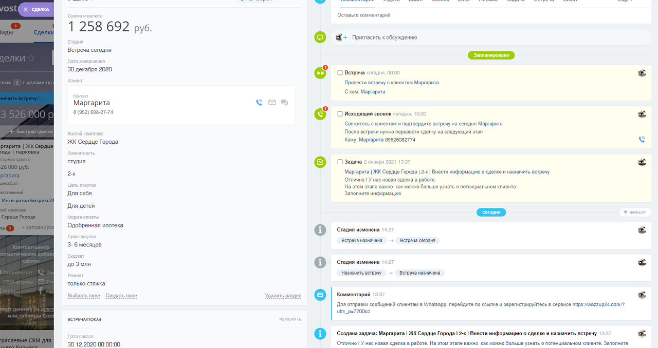 Кроме того, система контролирует заполнение обязательных полей на каждом этапе работы с лидами и сделками, напоминает менеджеру о запланированных встречах и позволяет не упустить важные этапы продажи.
