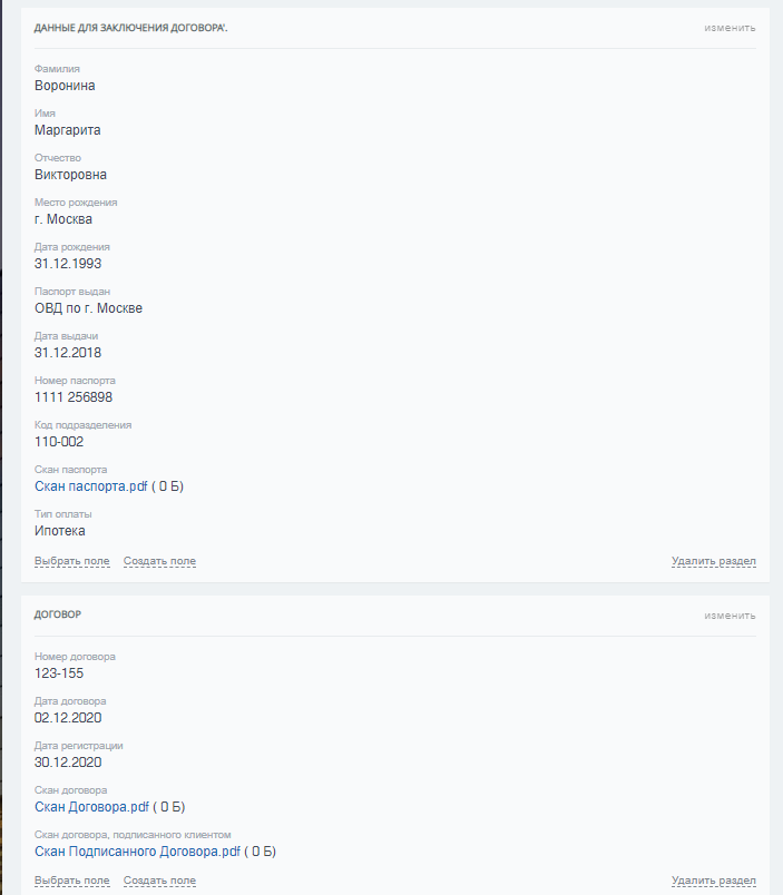 Всю информацию о сделке храним в CRM, от первичного запроса клиента до момента покупки и заключения договора.