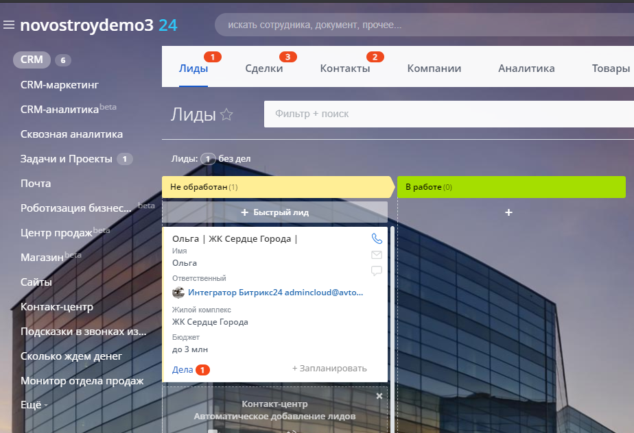 2. Удобная карточка лида, со всеми необходимыми полями для сбора первичной информации