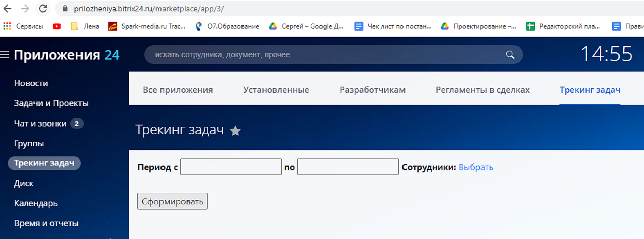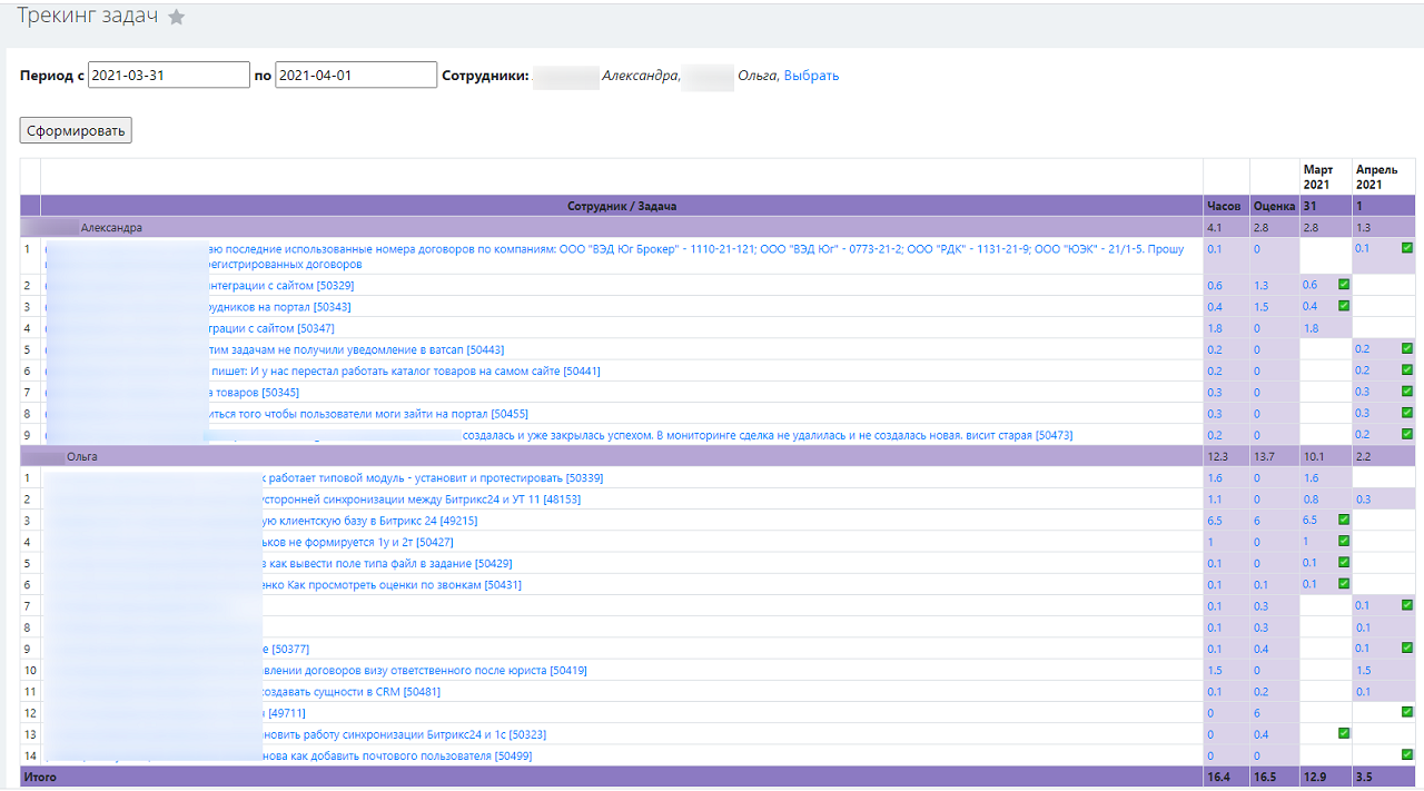 В отчете есть возможность выбрать сотрудников, по которым необходимо получить трек времени, и период, за который нужно получить трек