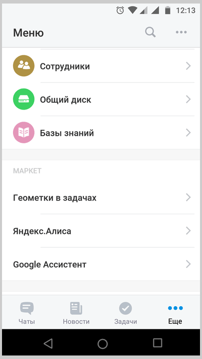 - Пункт мобильного приложения Битрикс24 "Еще", именно там, в блоке "Маркет", находится вызов приложения "Геометки в задачах".