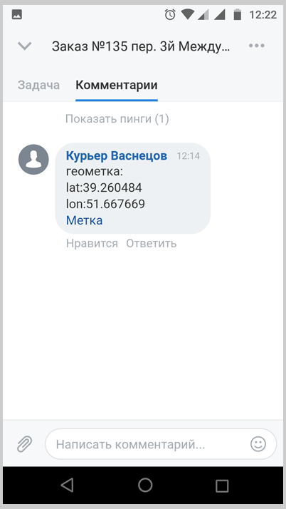 Отправка текущей геопозиции в комментарий к задаче из мобильного приложения.