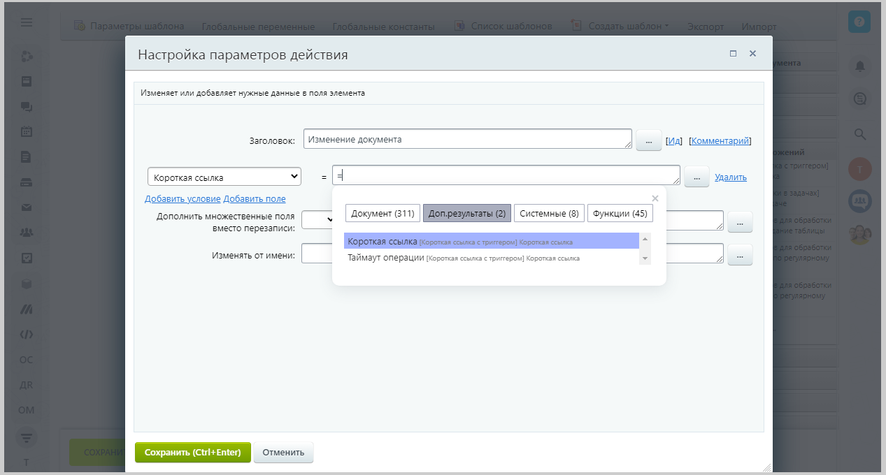 - Ссылка - в данном поле указывается непосредственно ссылка, которую нужно сократить, в нашем случае это https://lim8.ru, мы будем сокращать наш сайт с использованием нашего приложения. Причем сюда можно добавить разные GET параметры, в том числе необходимые UTM метки. Ссылка может быть передана как напрямую, так и с использованием переменных и полей в вашем бизнес-процессе. Корректность ссылки не проверяется.