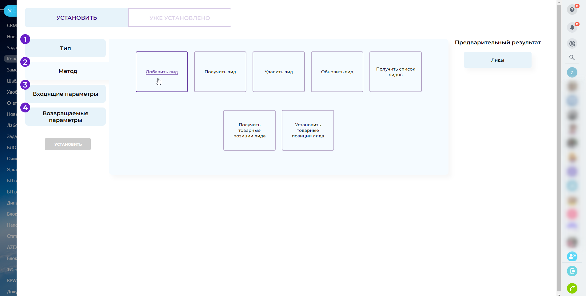 - Метод: Получить список лидов