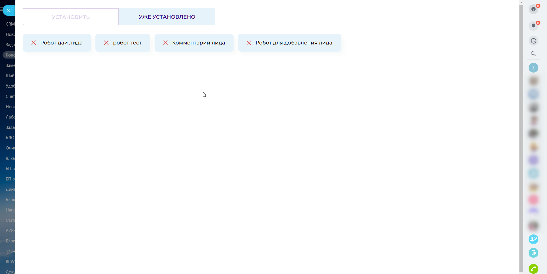 - Роботы доступны на всех коммерческих тарифах. Бизнес-процессы доступны только на тарифах Профессиональный и Энтерпрайз;