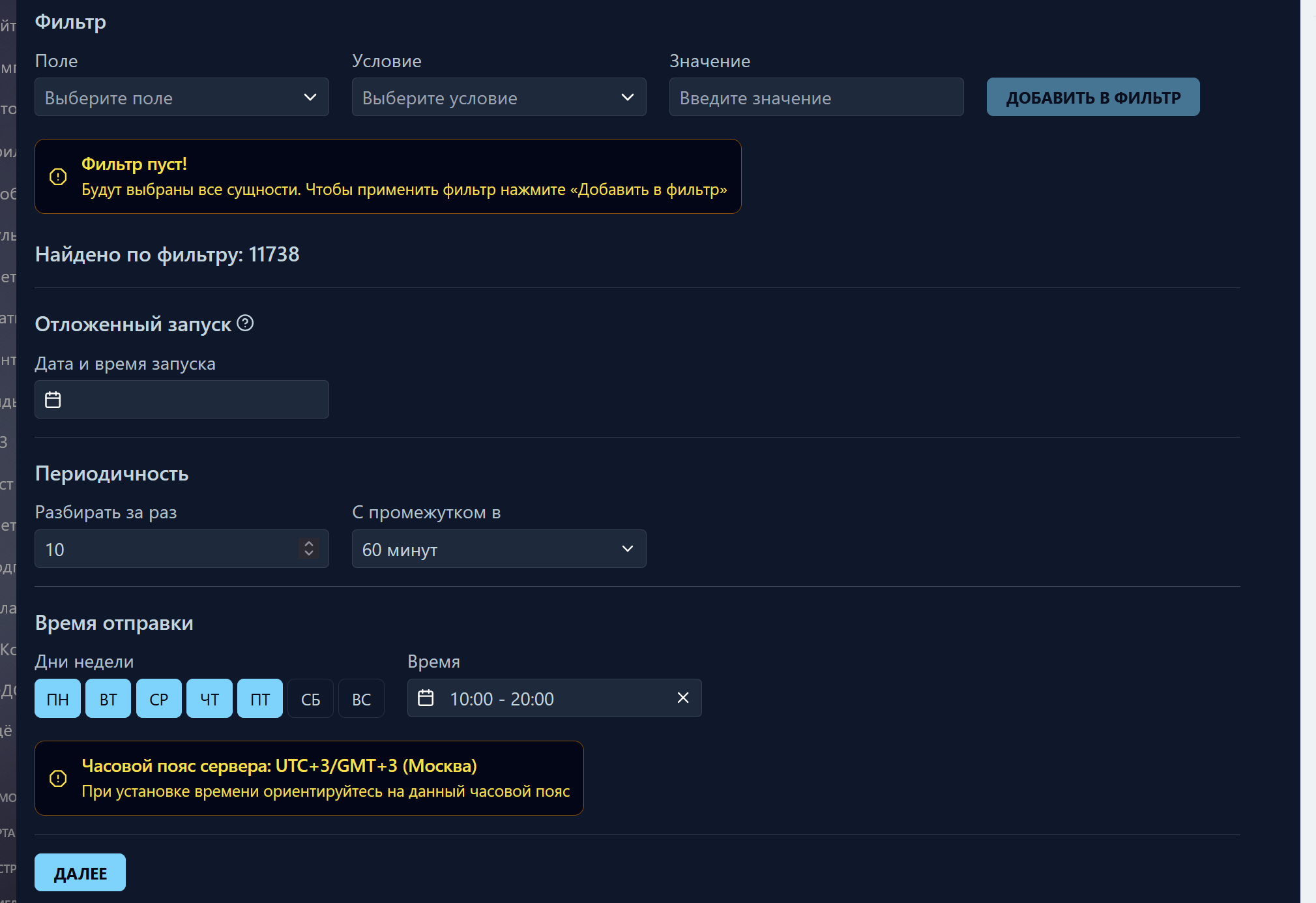 Конструктор рассылок через запуск БП с равномерной нагрузкой