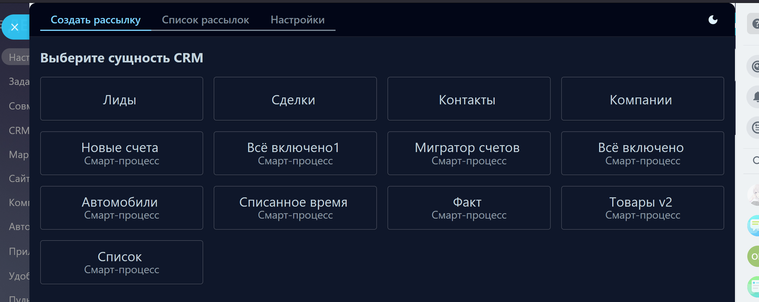- Выгрузить сущности со стадиями (лиды/сделки/смарт-процессы) в XLS и посмотреть, в каких стадиях они находятся после рассылки. Например, рассылка отправлена по забытым сделкам, по итогу у вас будет список успешных сделок по этой рассылке;