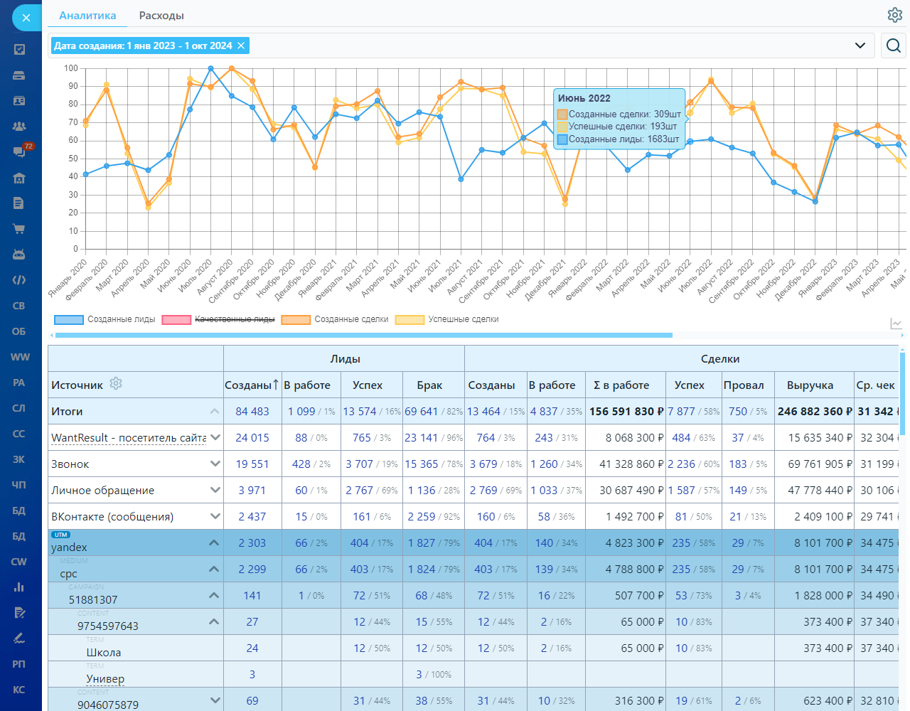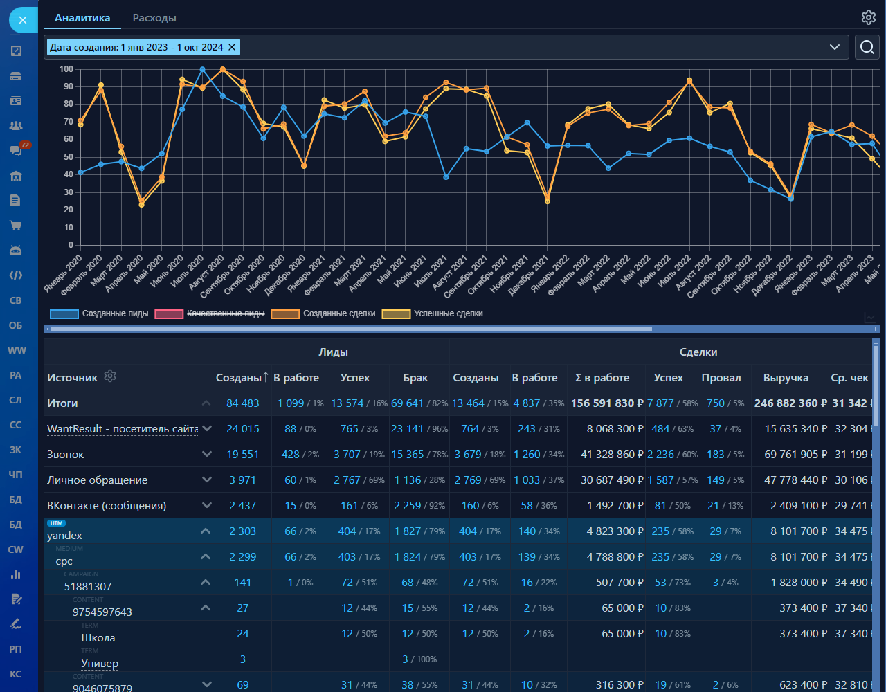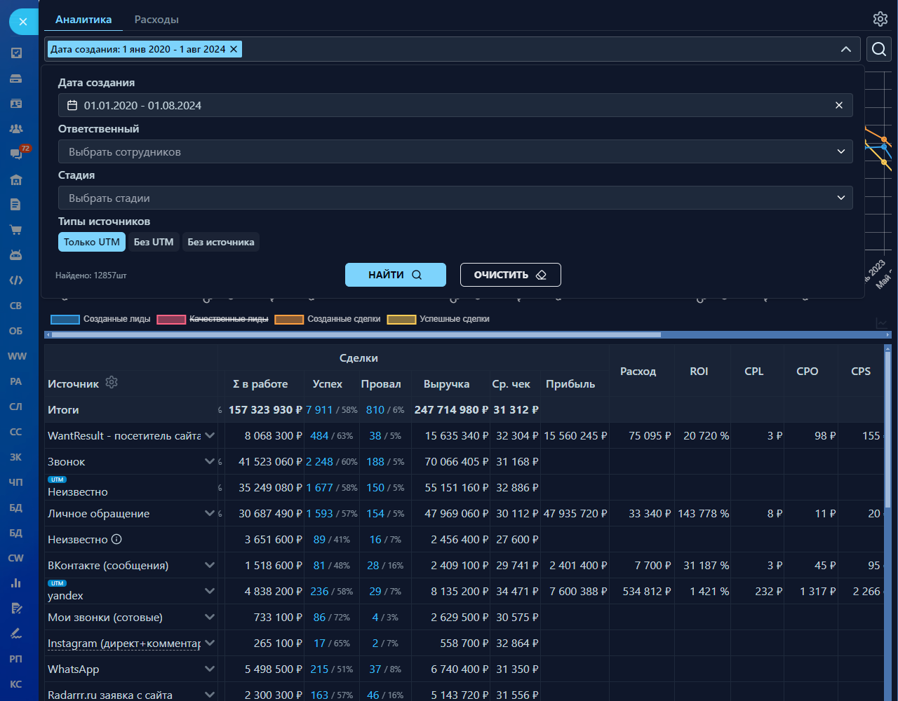 - Если лид содержит UTM-метки, то она является более приоритетной нежели чем Источник.