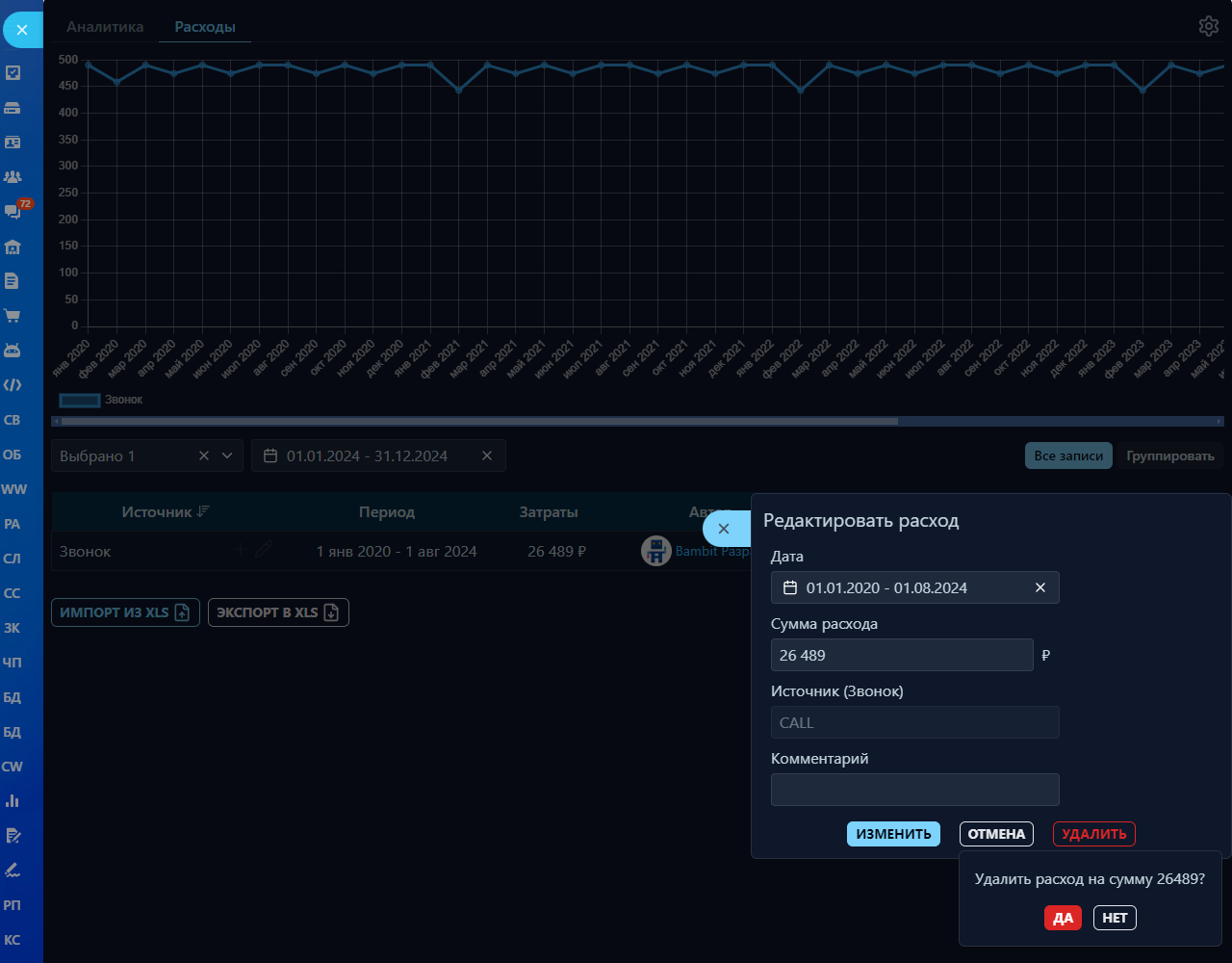 - Доступы к расходам - чтобы не администраторы, могли работать с расходами;