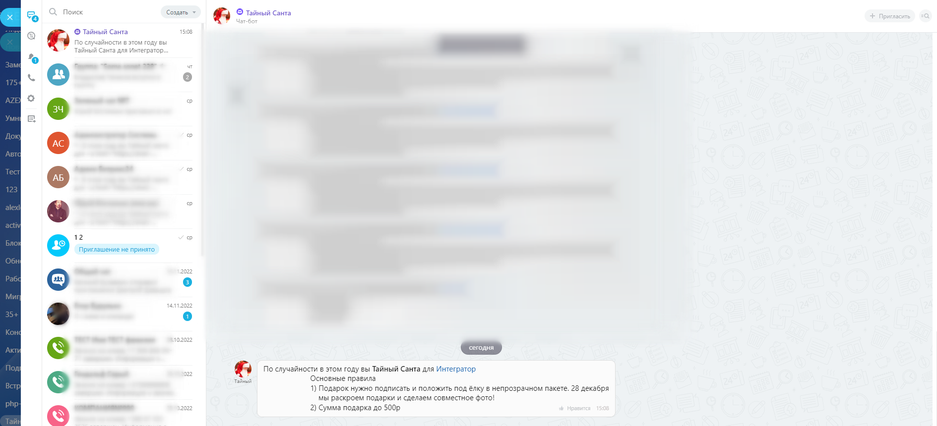 - Каждый получит личное сообщение от чат-бота "Тайный Санта" с указанием правил и сотрудника, которому нужно подарить подарок.