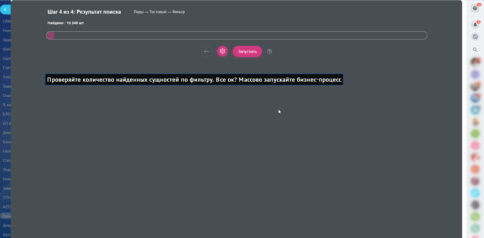 Массовый запуск БП к сущностям CRM с умным фильтром