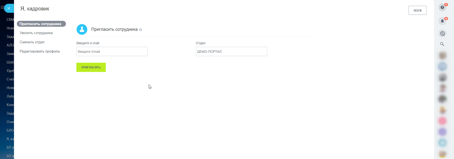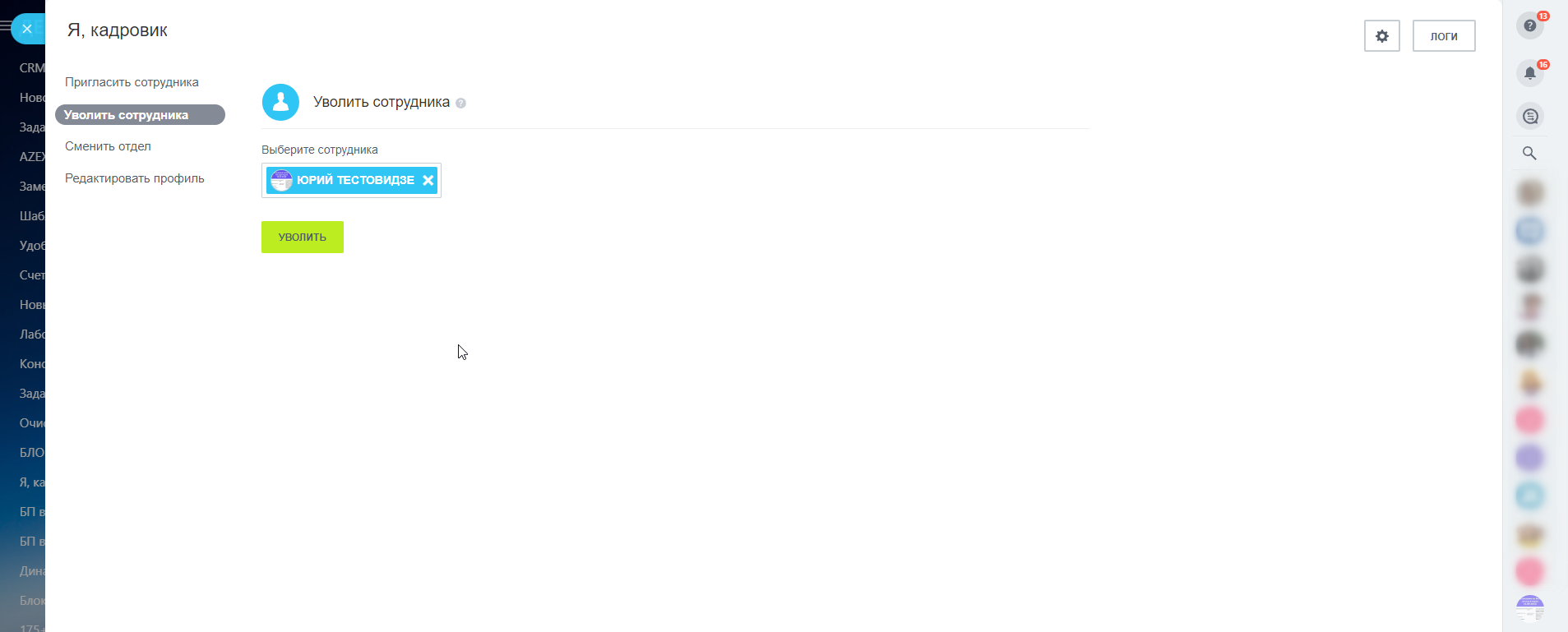 Выдайте роль сотрудникам на выбор: Полные права, Кадровик или Начальник.