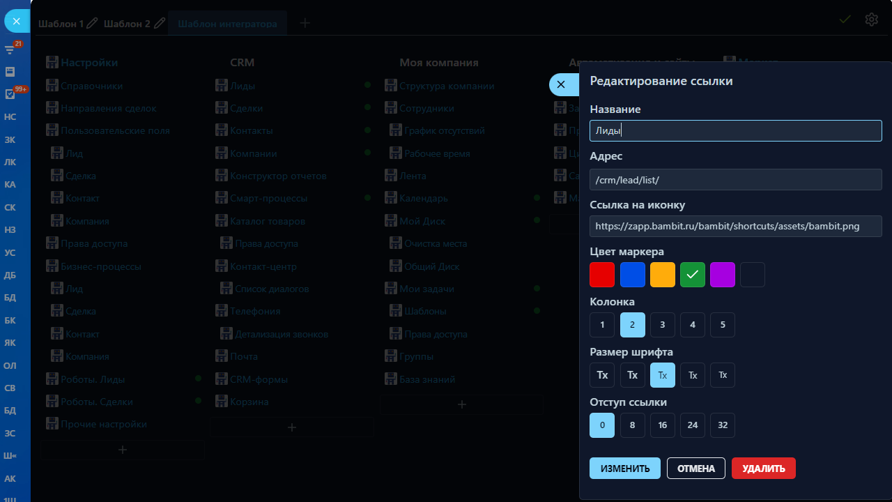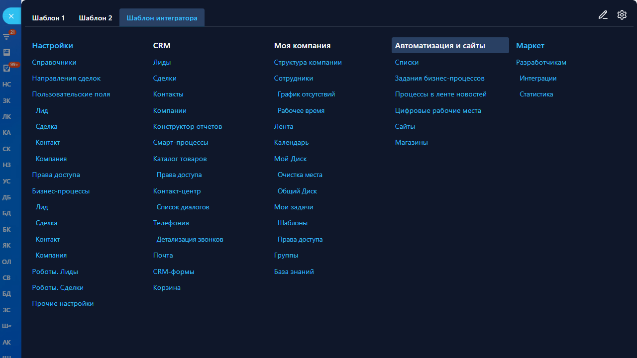Так почему бы не настроить ярлыки для Битрикс24? В левое (боковое) меню все не влезает, поэтому воспользуйтесь нашим решением.