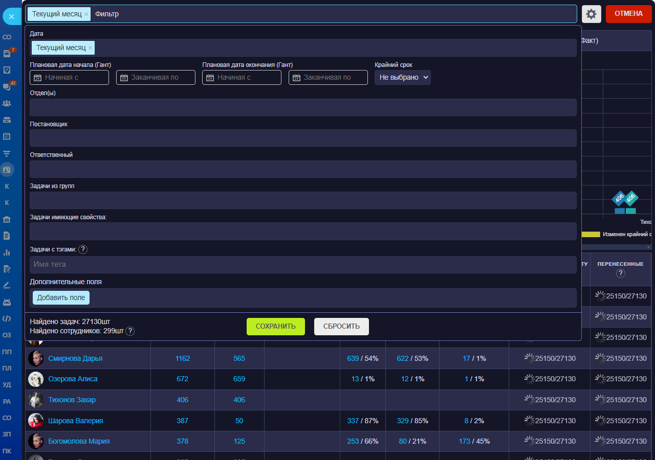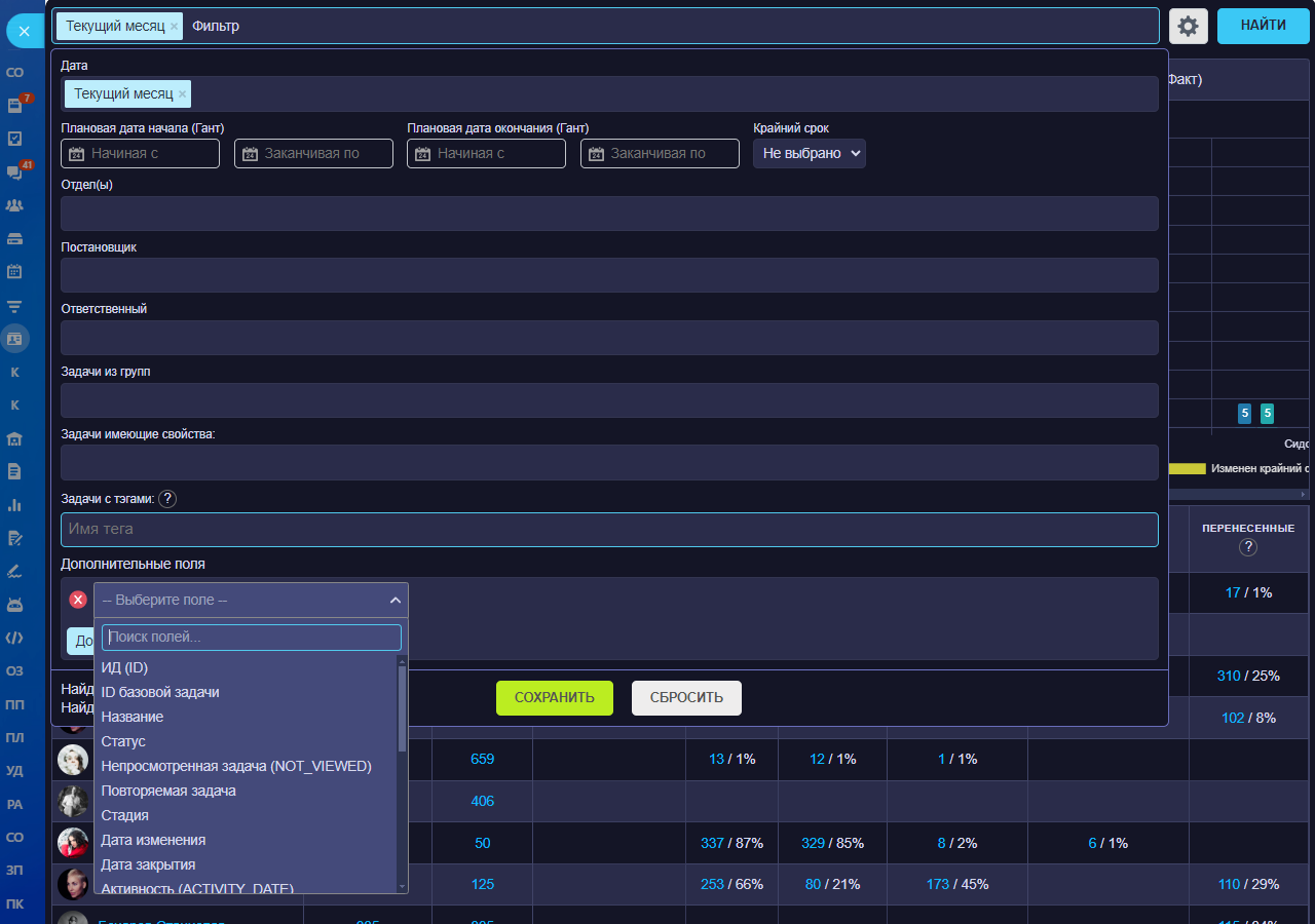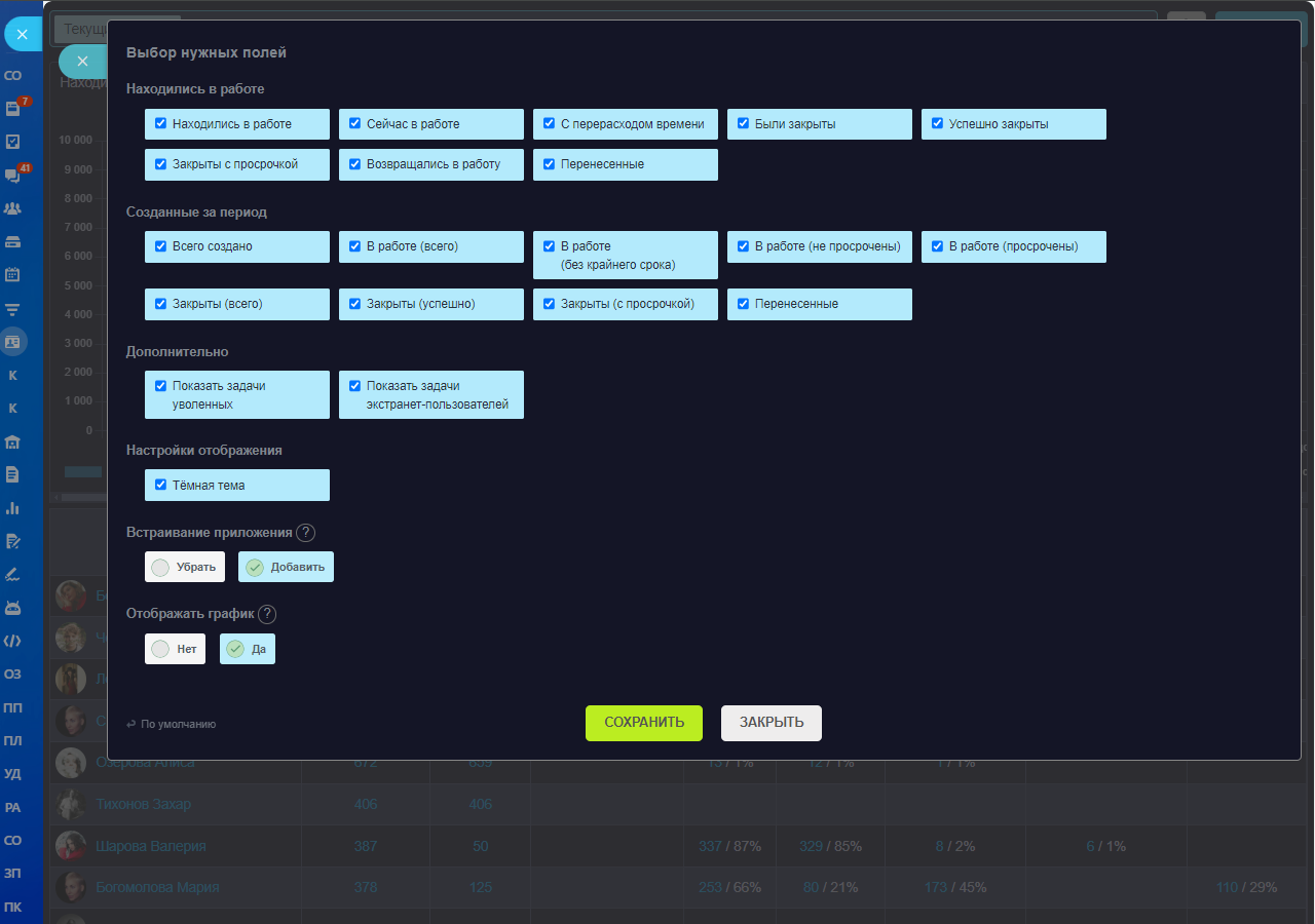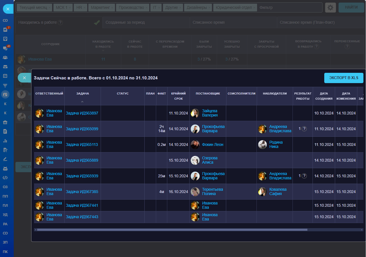 • Сейчас в работе (всего, без крайнего срока, не просрочены, просрочены);