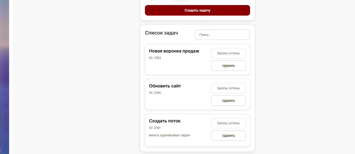 - Приоритизация: список автоматически сортируется по сумме баллов.