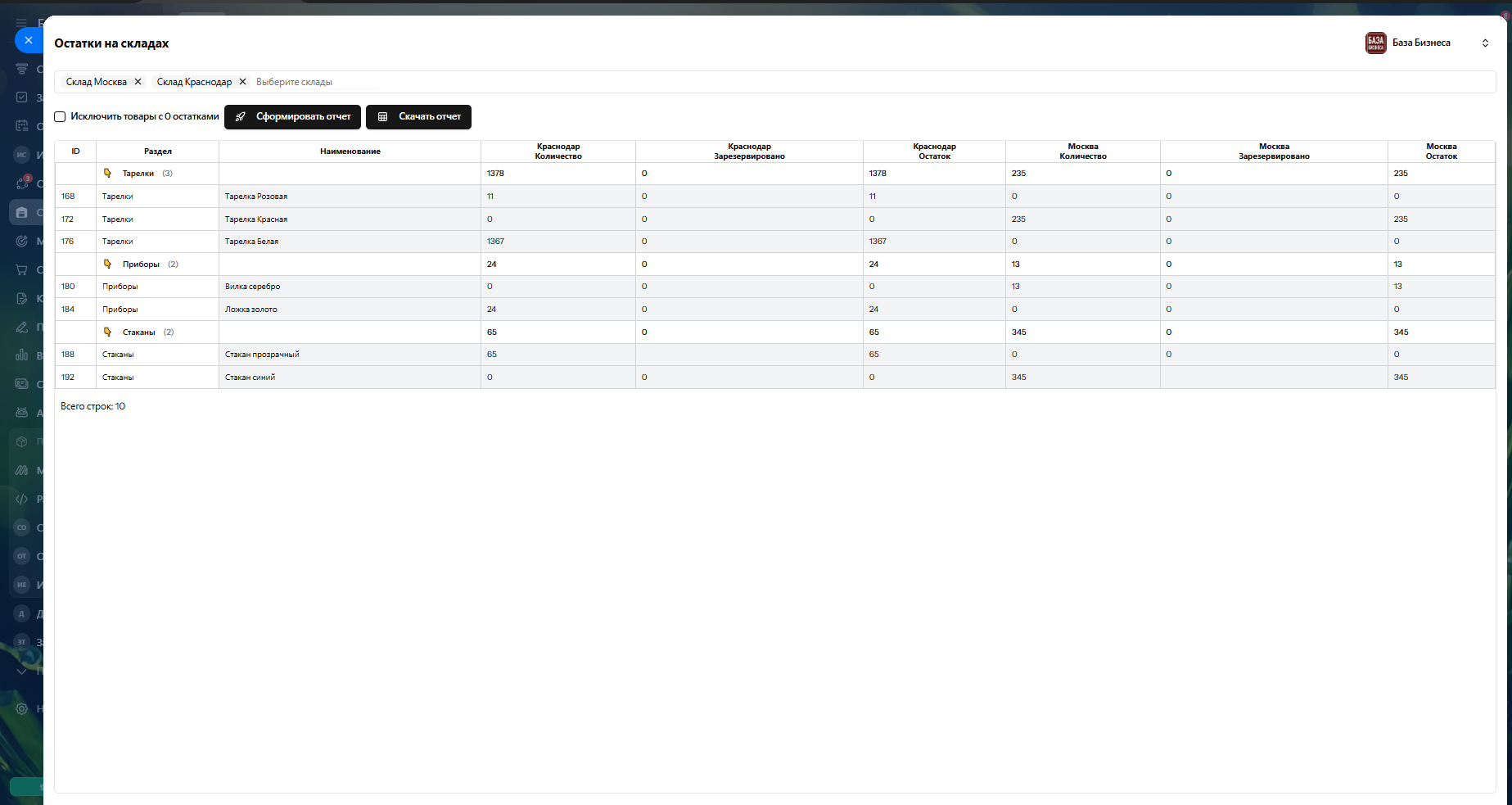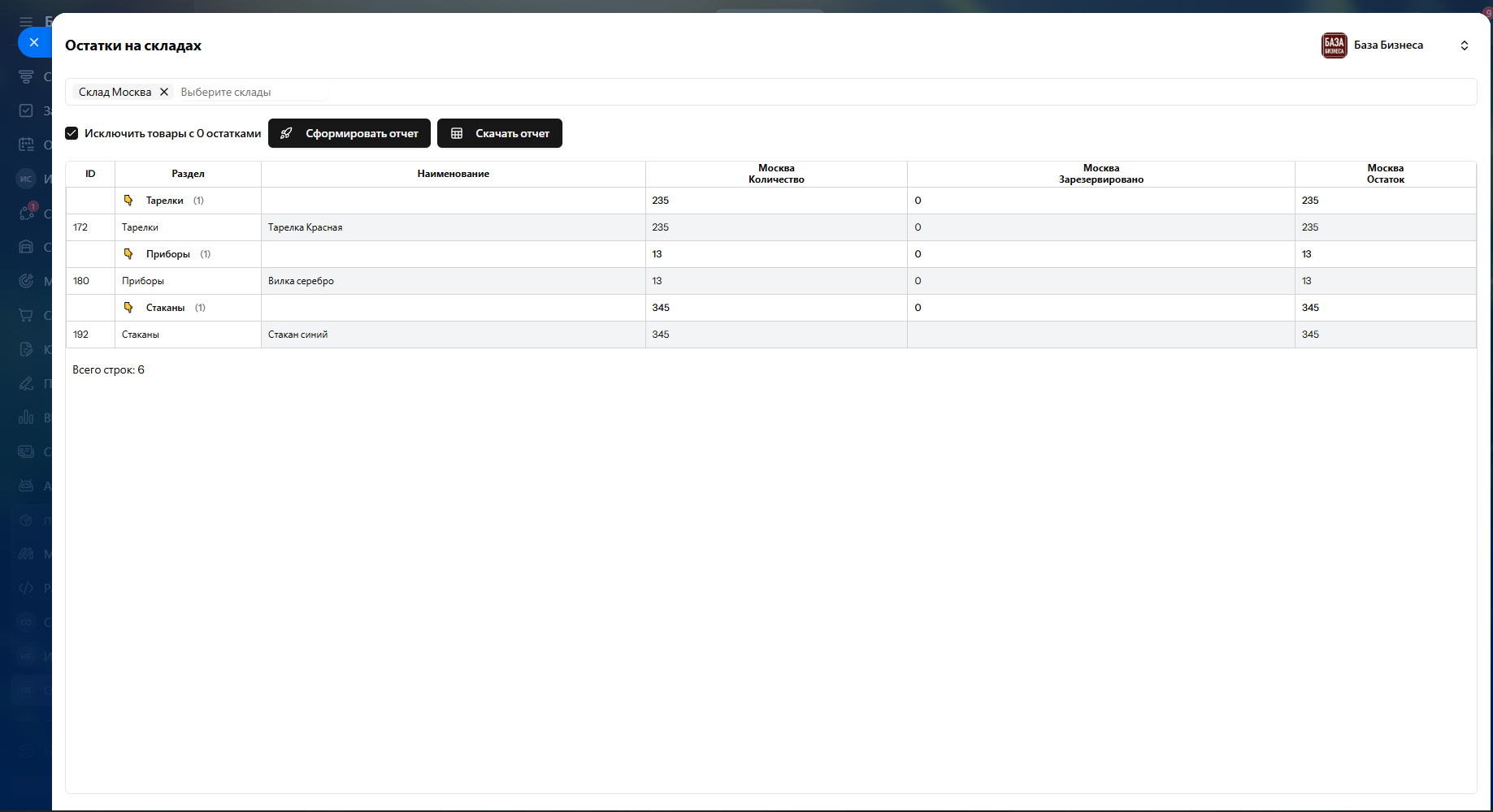Приложение предоставляет именно тот функционал, который необходим для ежедневной работы с товарными остатками. Удобный табличный формат, фильтрация по нулевым остаткам, выгрузка в Excel — всё что нужно для оперативного управления.