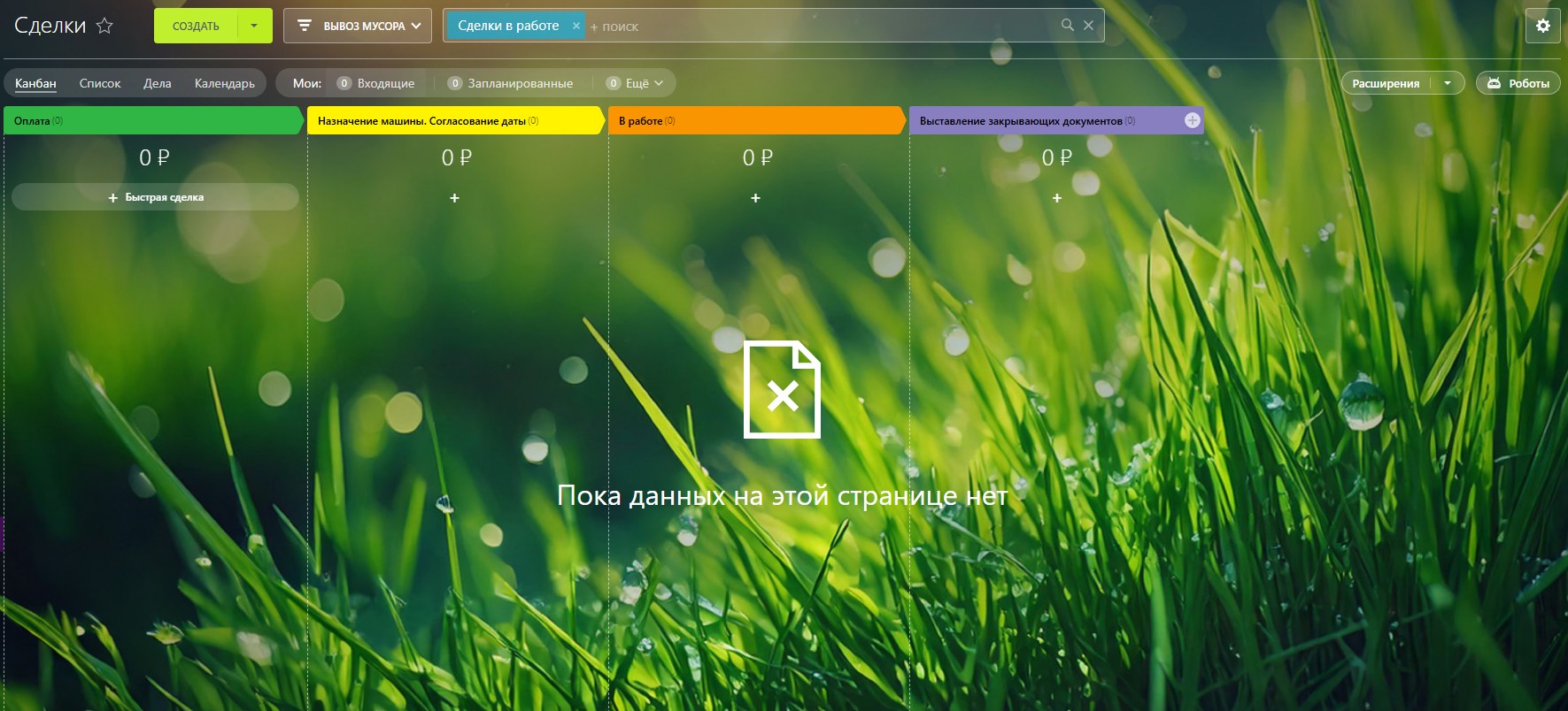- Вывоз мусора – воронка для управления процессом вывоза мусора от момента оплаты до завершения работы