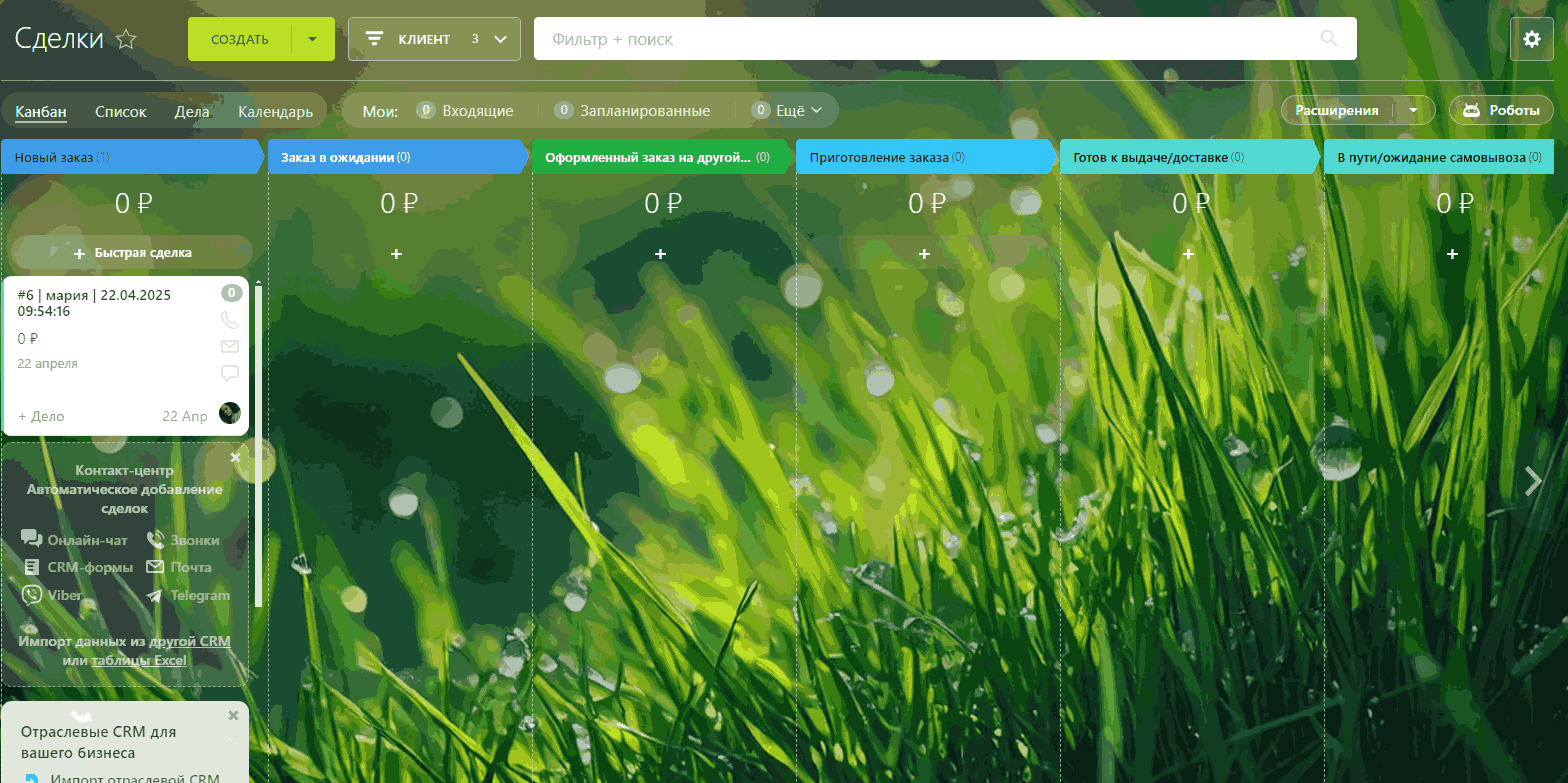 - Автоматическое распределение заявок по нужным воронкам