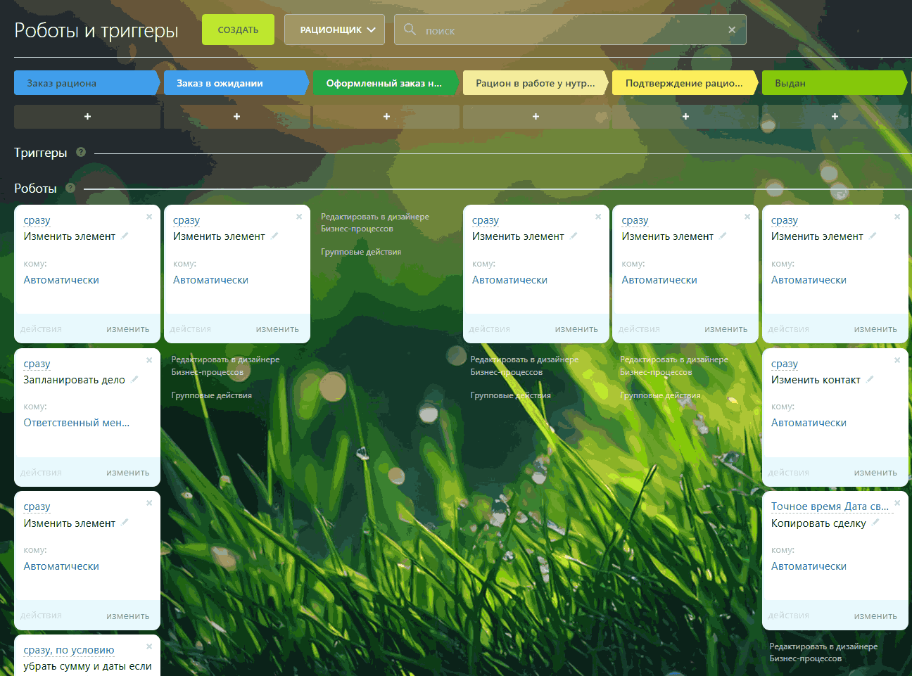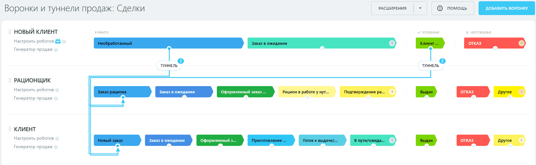 В CRM «Доставка & Рацион» реализовано: