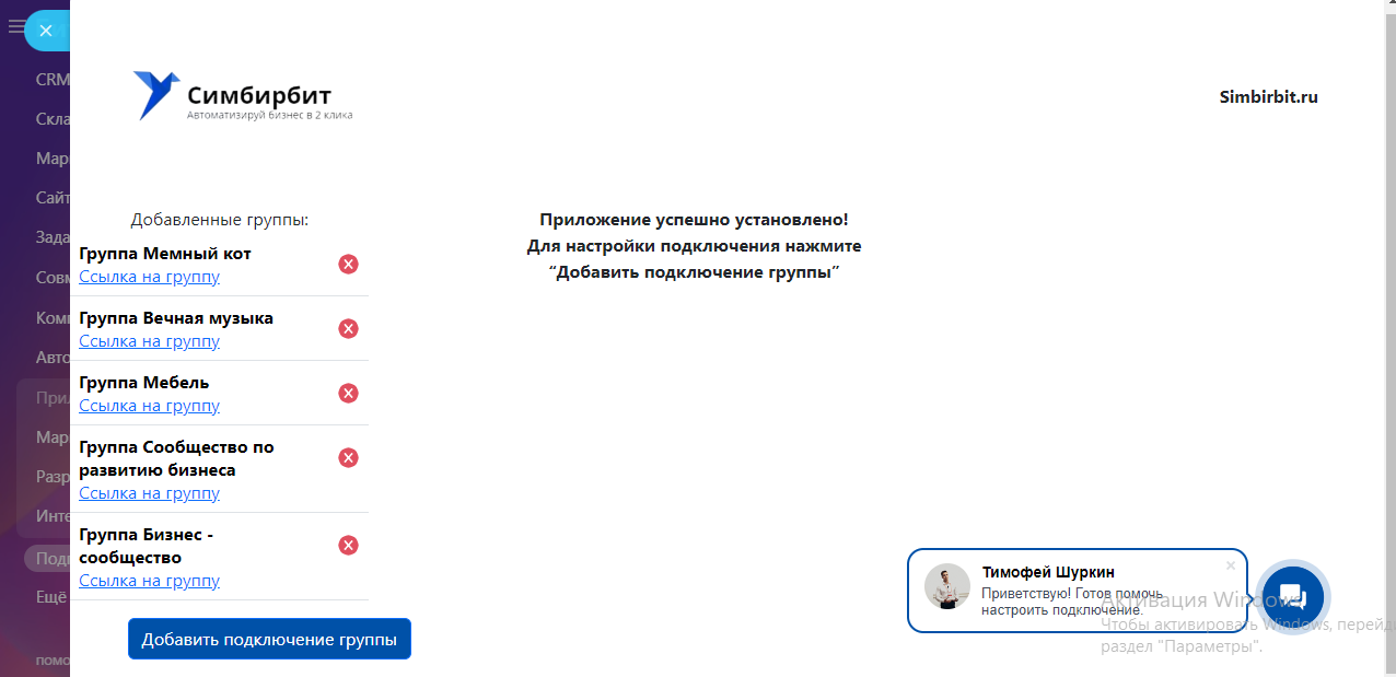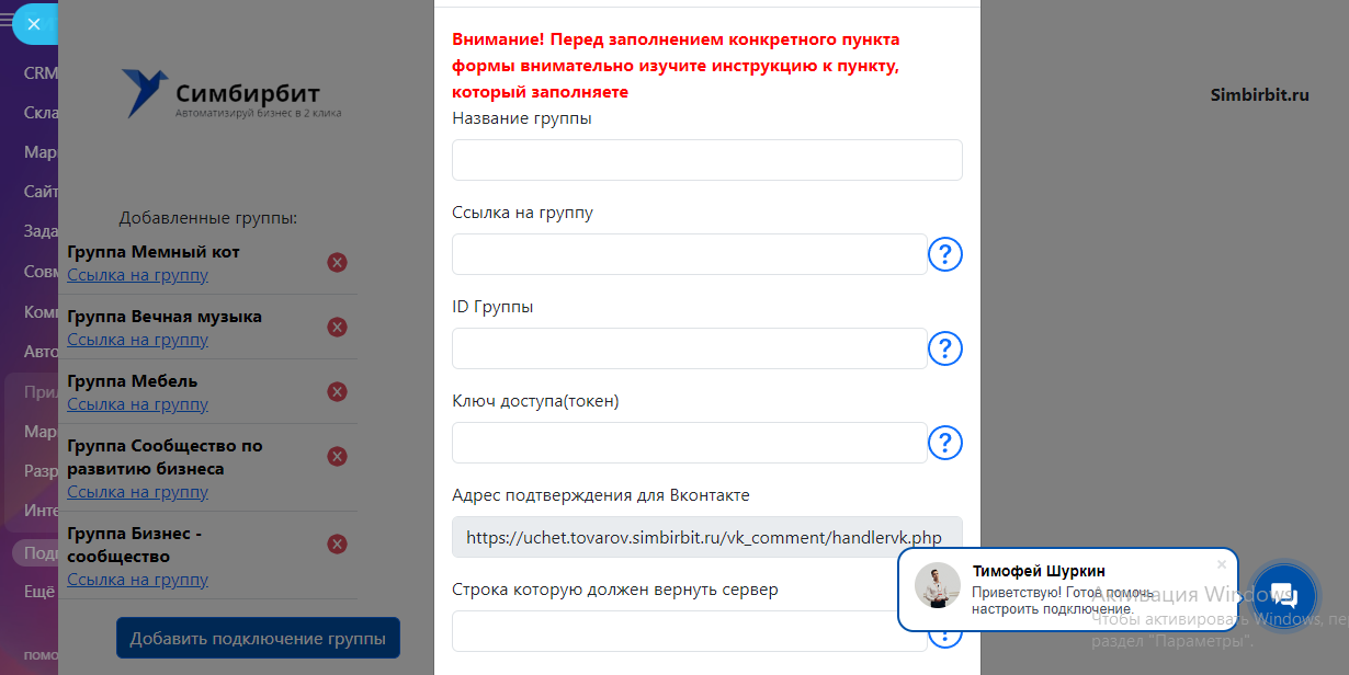 3. Заполните форму добавления подключения группы строго в соответствии с инструкцией.