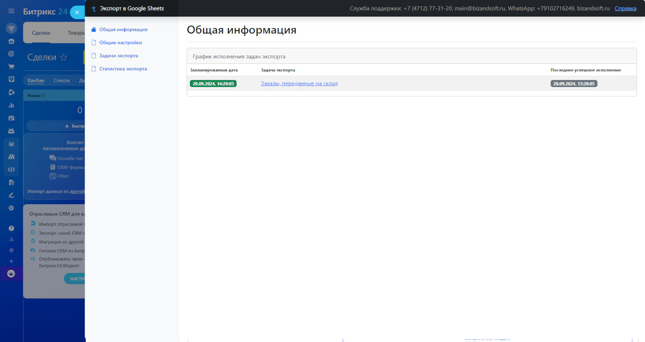 Приложение «Автоматический экспорт в Google Sheets» для «Битрикс24» станет незаменимым помощником в решении проблем своевременного и качественного экспорта данных независимо от того, какая именно задача требует использования документов Google Sheets, ведь данное приложение позволяет: