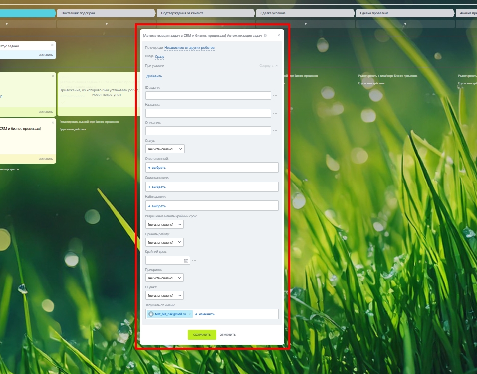 - Автоматическое выполнение: При наступлении условий робот автоматически обновляет задачу и фиксирует результат.