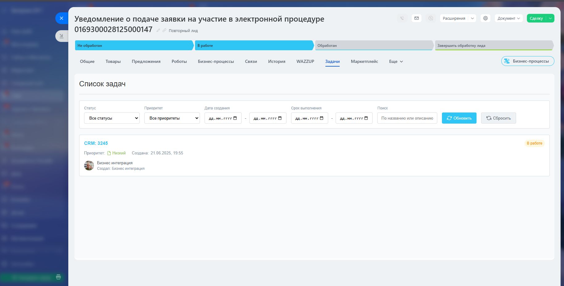 ✅ Отдел продаж — контроль задач по сделкам и лидам.
