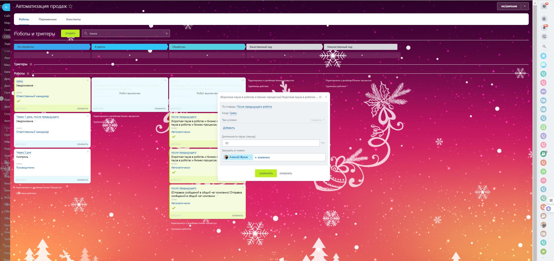 - Легкое управление: Просто добавьте робота в нужный участок процесса и настройте необходимые параметры.